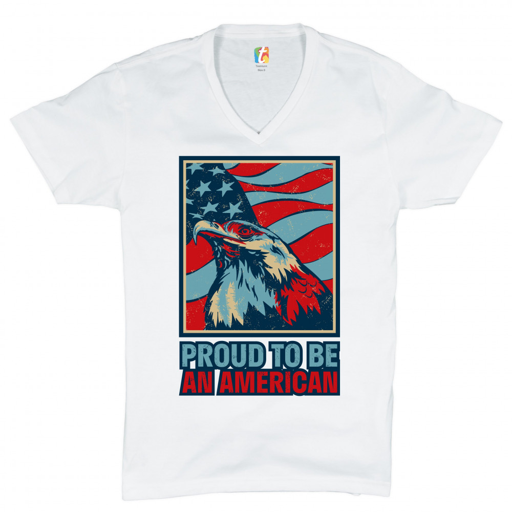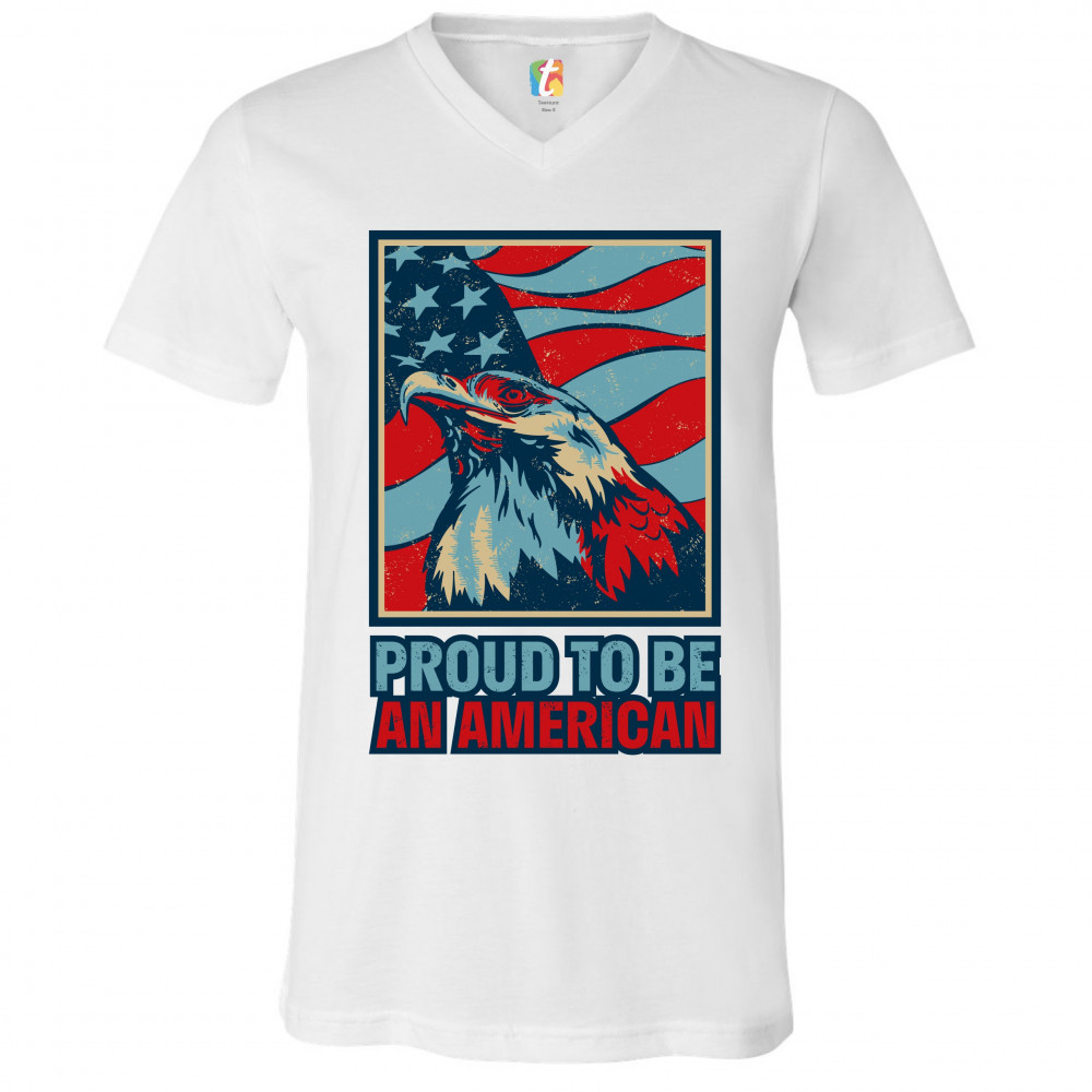 PROUD TO BE AN AMERICAN v-neck t-shirt 4th of july bald eagle patriotic tee white