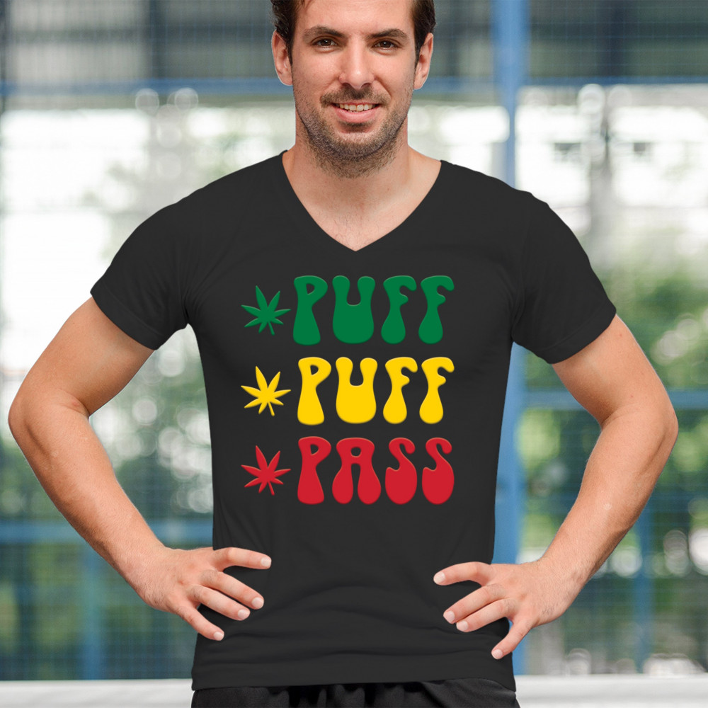 Get into the groove with our "Puff Puff Pass" T-shirt, a vibrant nod to Rasta culture and camaraderie. A bold, carefree statement for the chilled out.