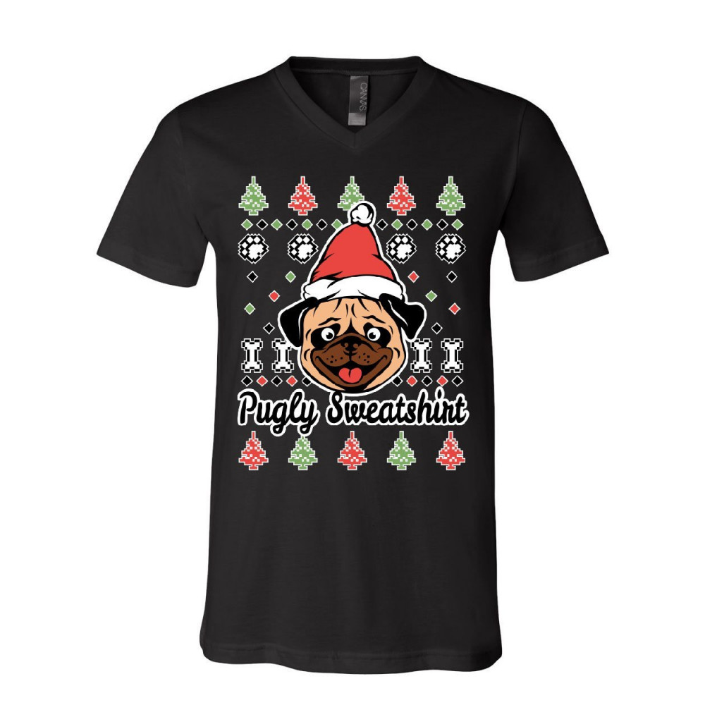 PUGLY SWEATSHIRT v-neck t-shirt pug ugly sweater jolly christmas xmas tee black