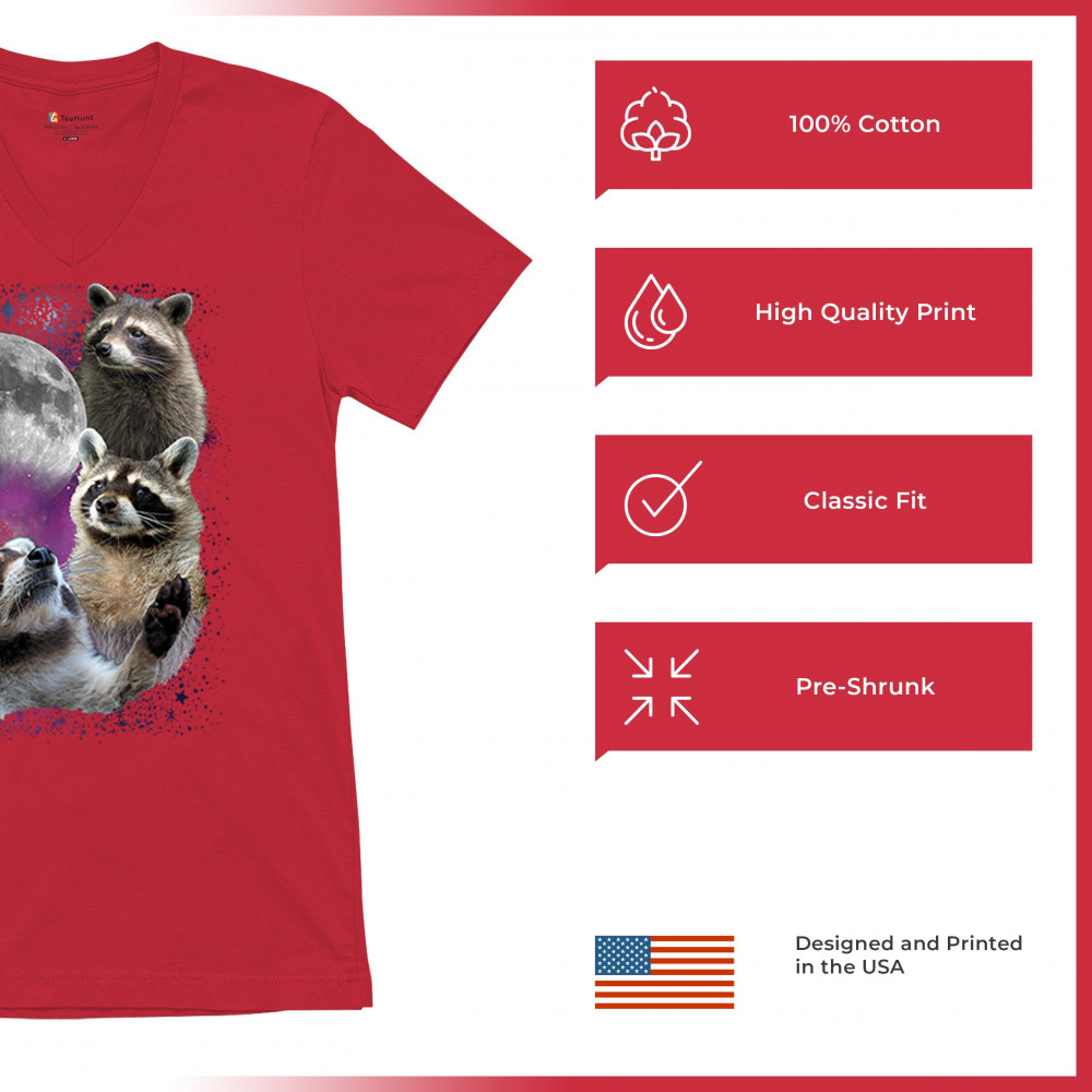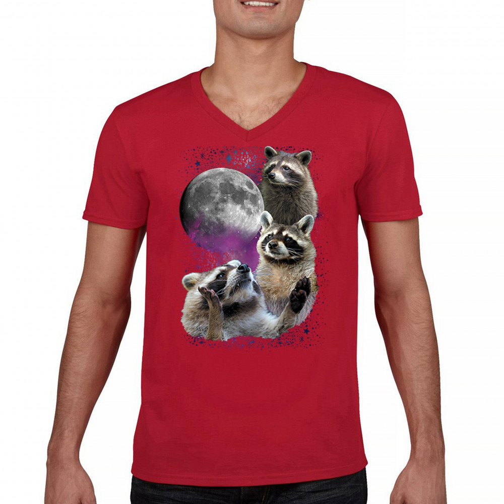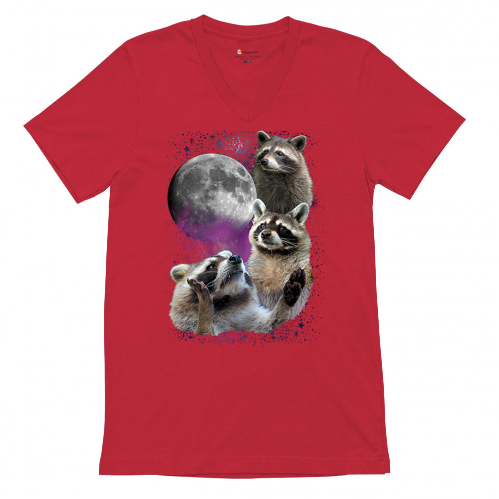 Embrace nature with this quirky raccoon and moon design, perfect for space and animal lovers. Ideal for casual wear or gifts.