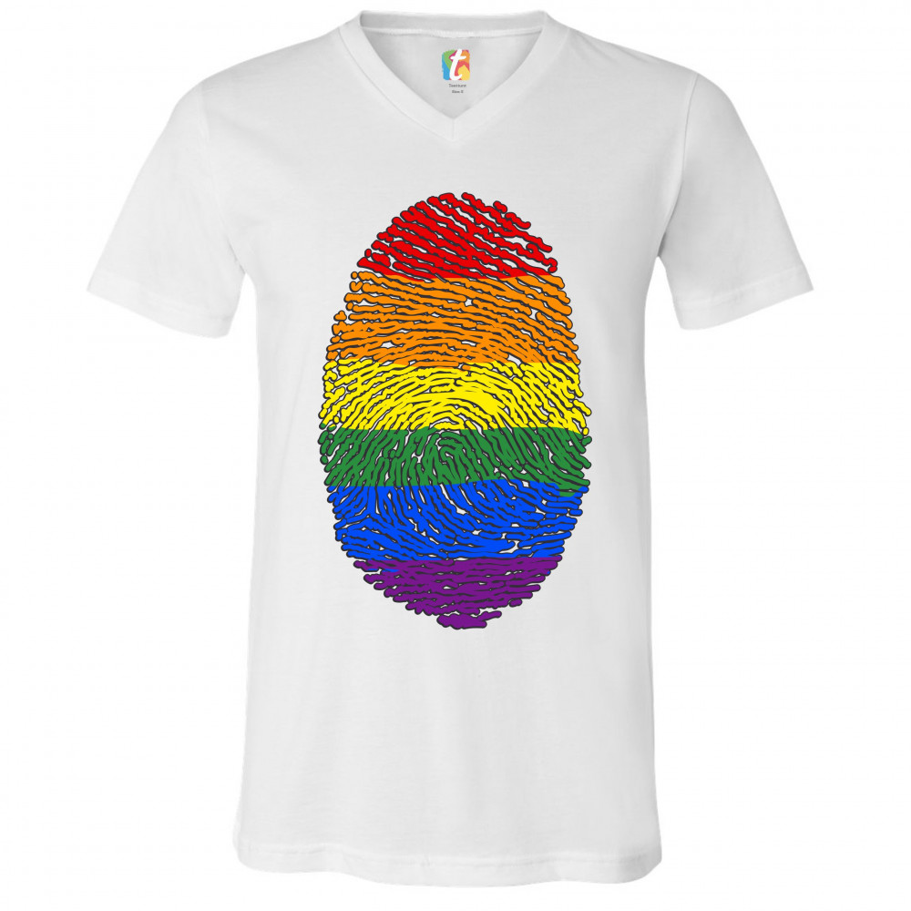 RAINBOW FINGERPRINT v-neck t-shirt gay pride month lgbtq support ally tee white