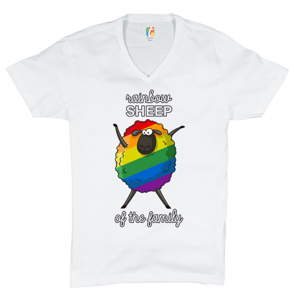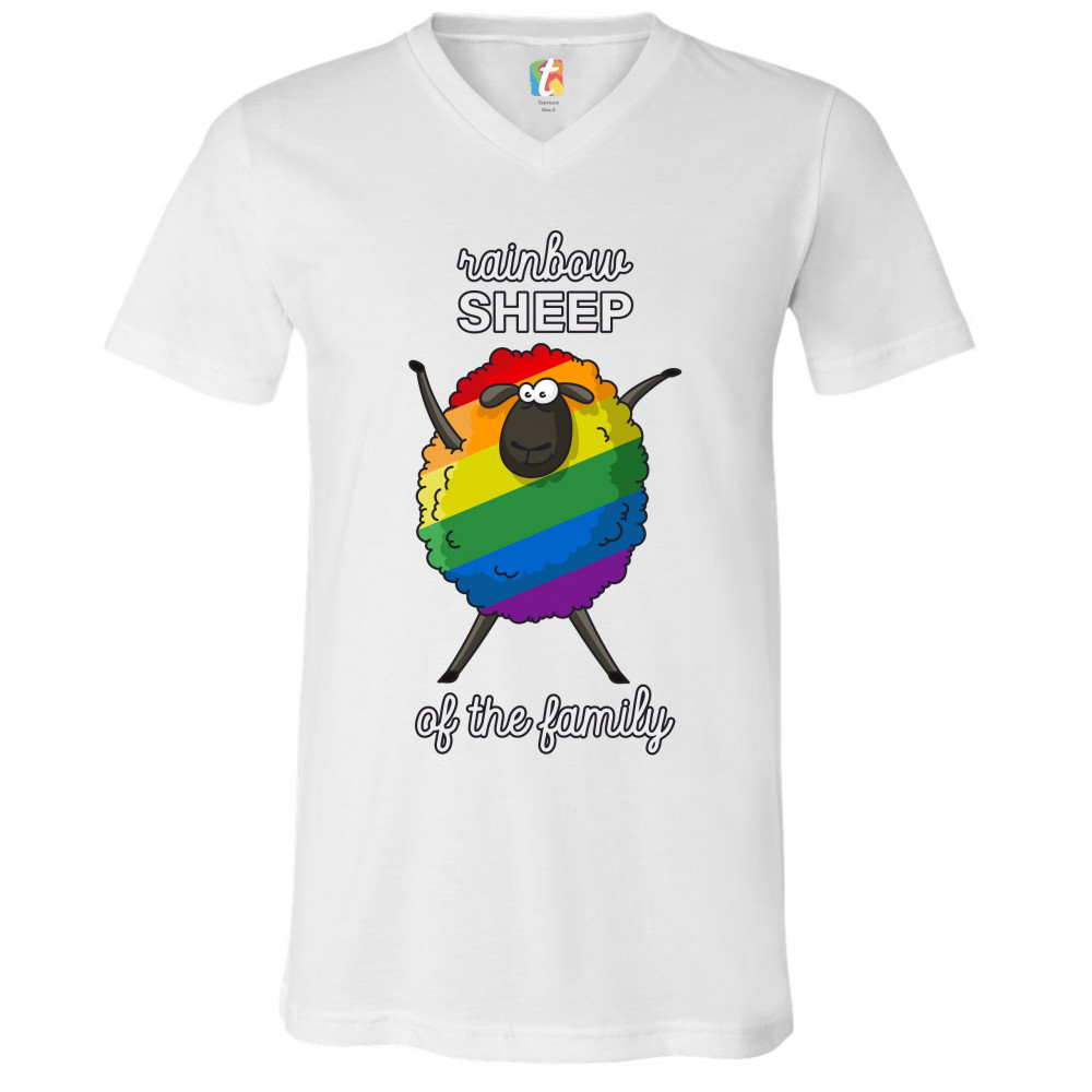 RAINBOW SHEEP OF THE FAMILY v-neck t-shirt gay pride lgbt support funny tee white