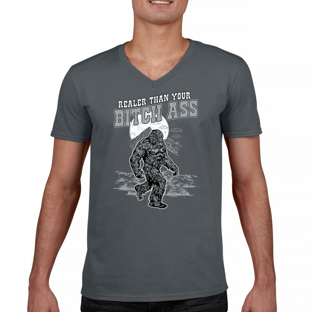 Edgy Bigfoot design with sarcastic cryptid humor and gritty wilderness style. Great for trolls, jokers, and rugged outdoors fans.