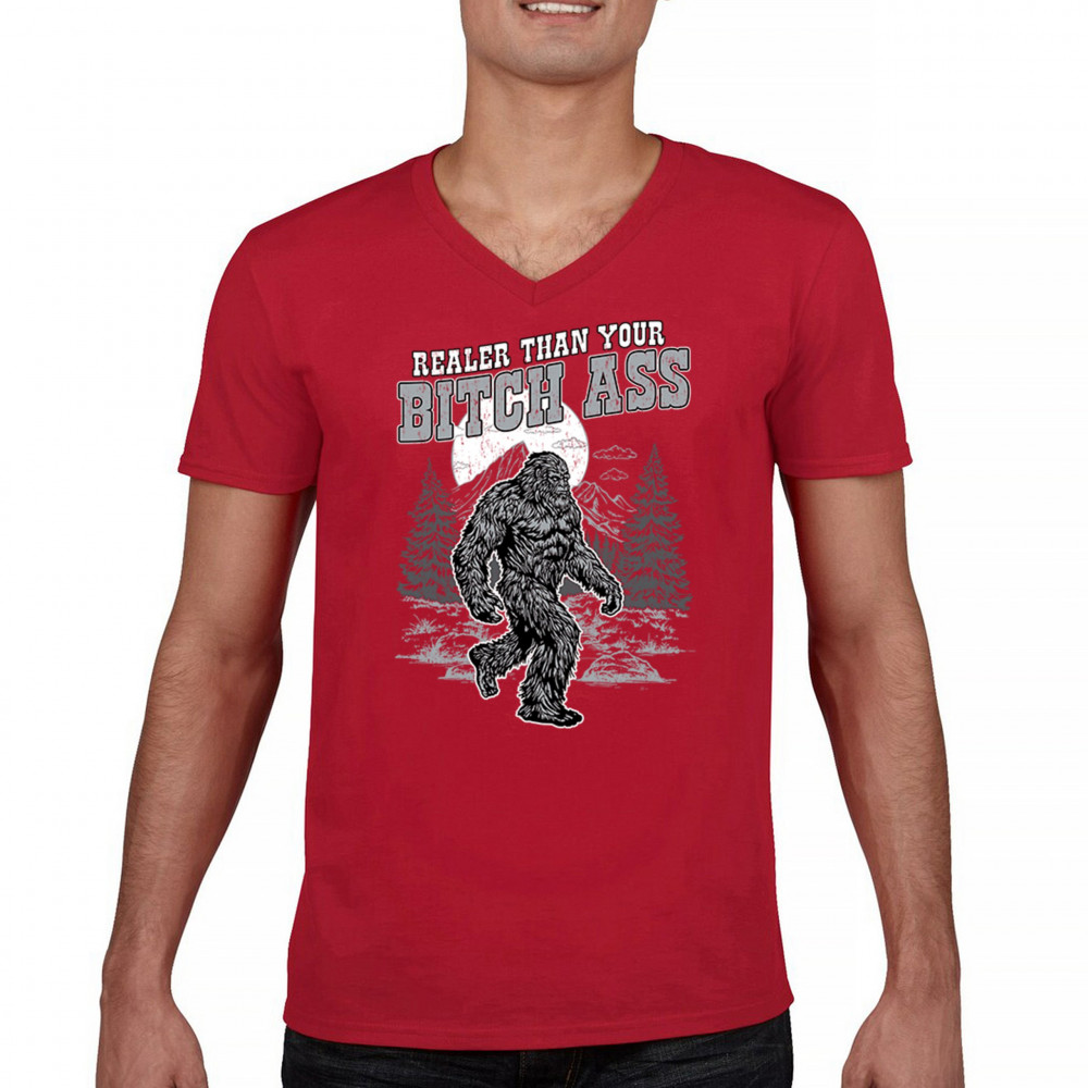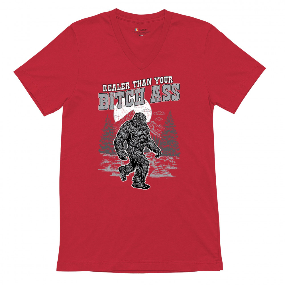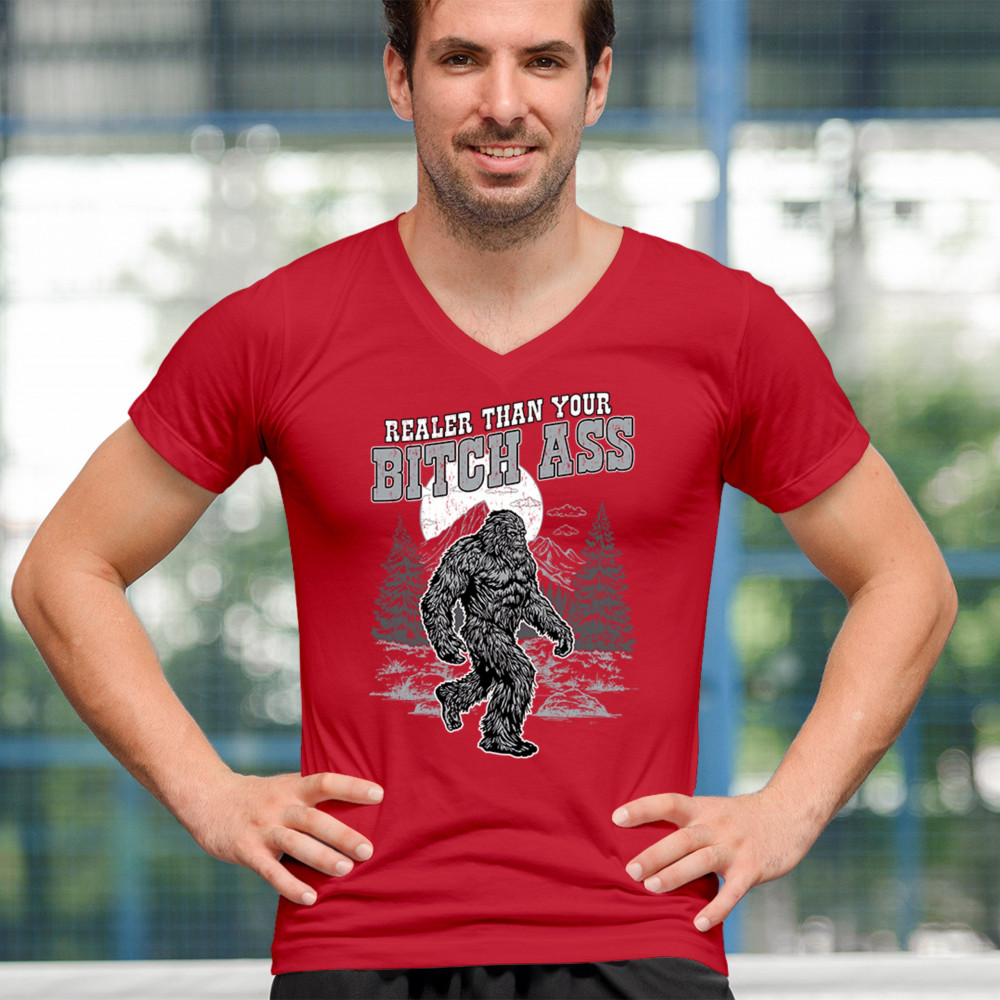 Edgy Bigfoot design with sarcastic cryptid humor and gritty wilderness style. Great for trolls, jokers, and rugged outdoors fans.