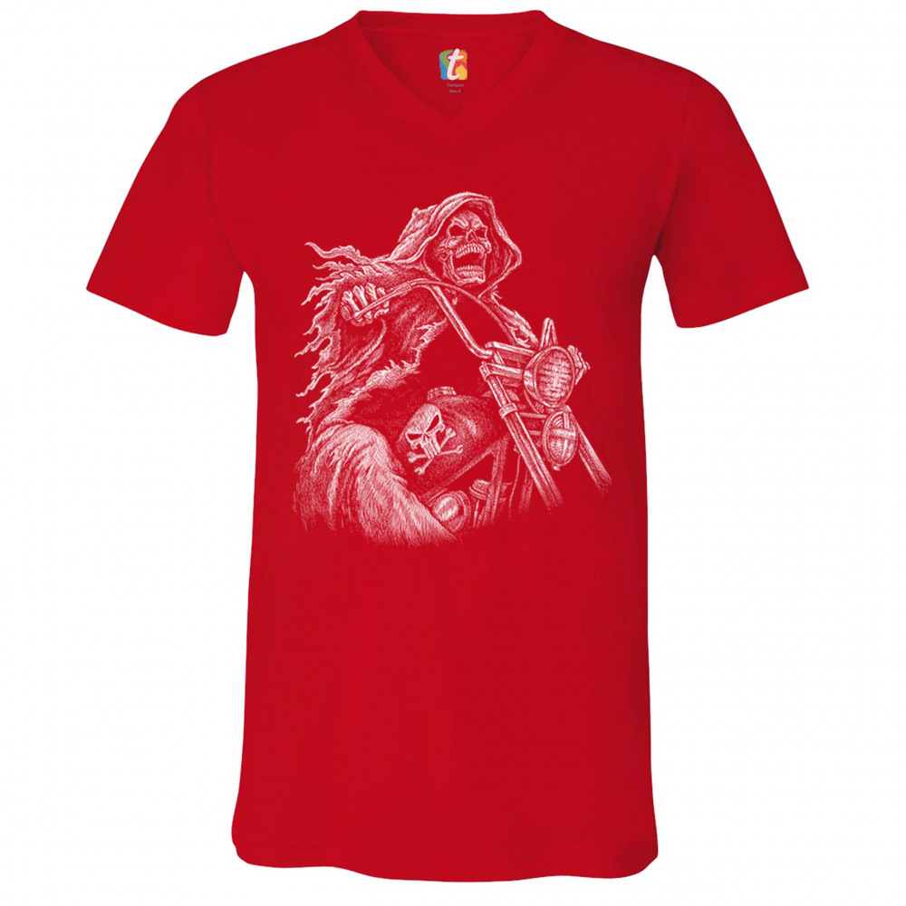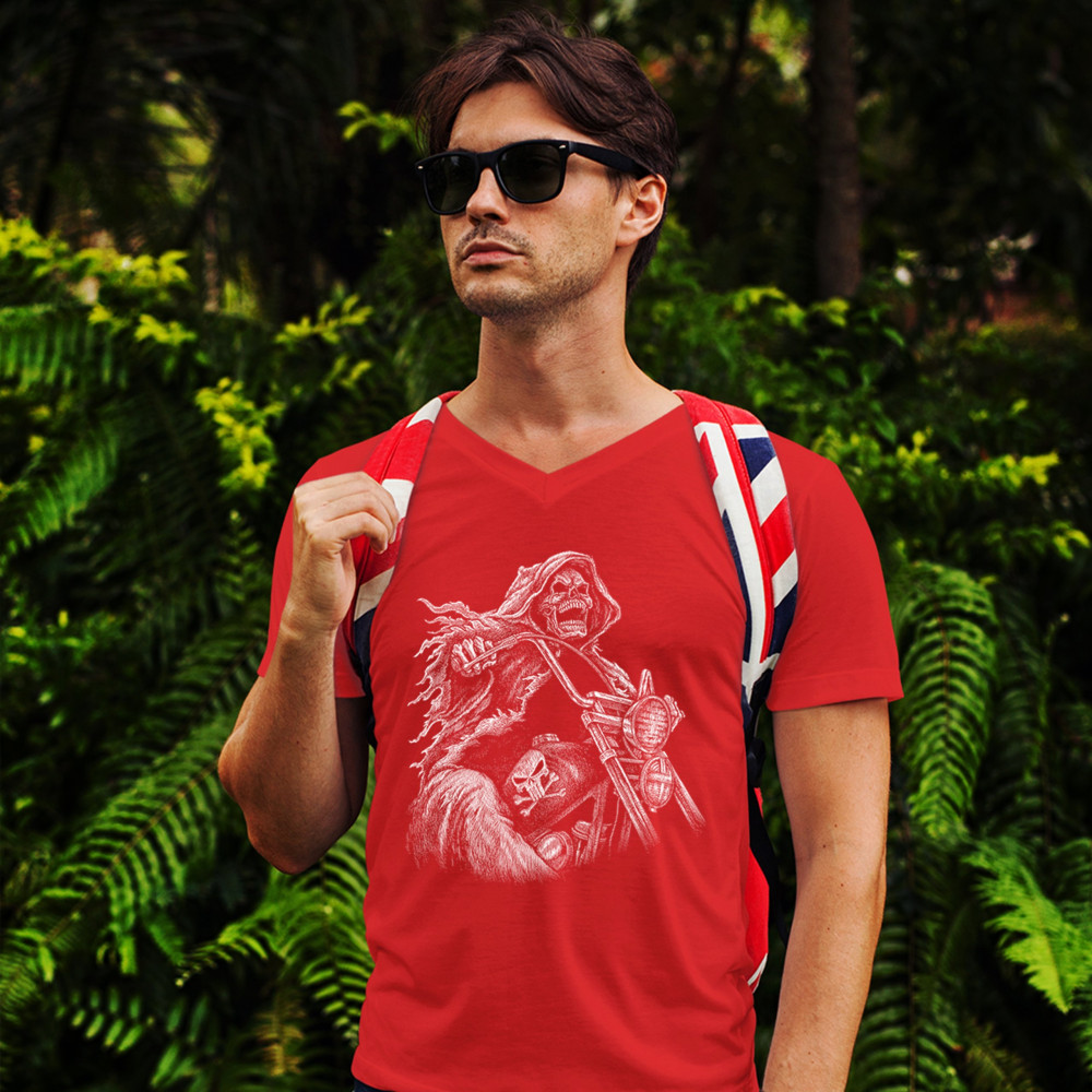 REAPER BIKER v-neck t-shirt ride or die skeleton biker forever motorcycle tee red