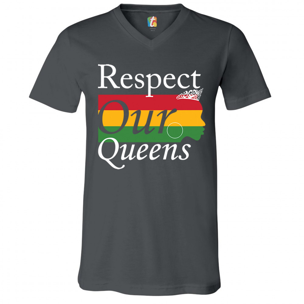 RESPECT OUR QUEENS v-neck t-shirt black girl magic african american women tee charcoal