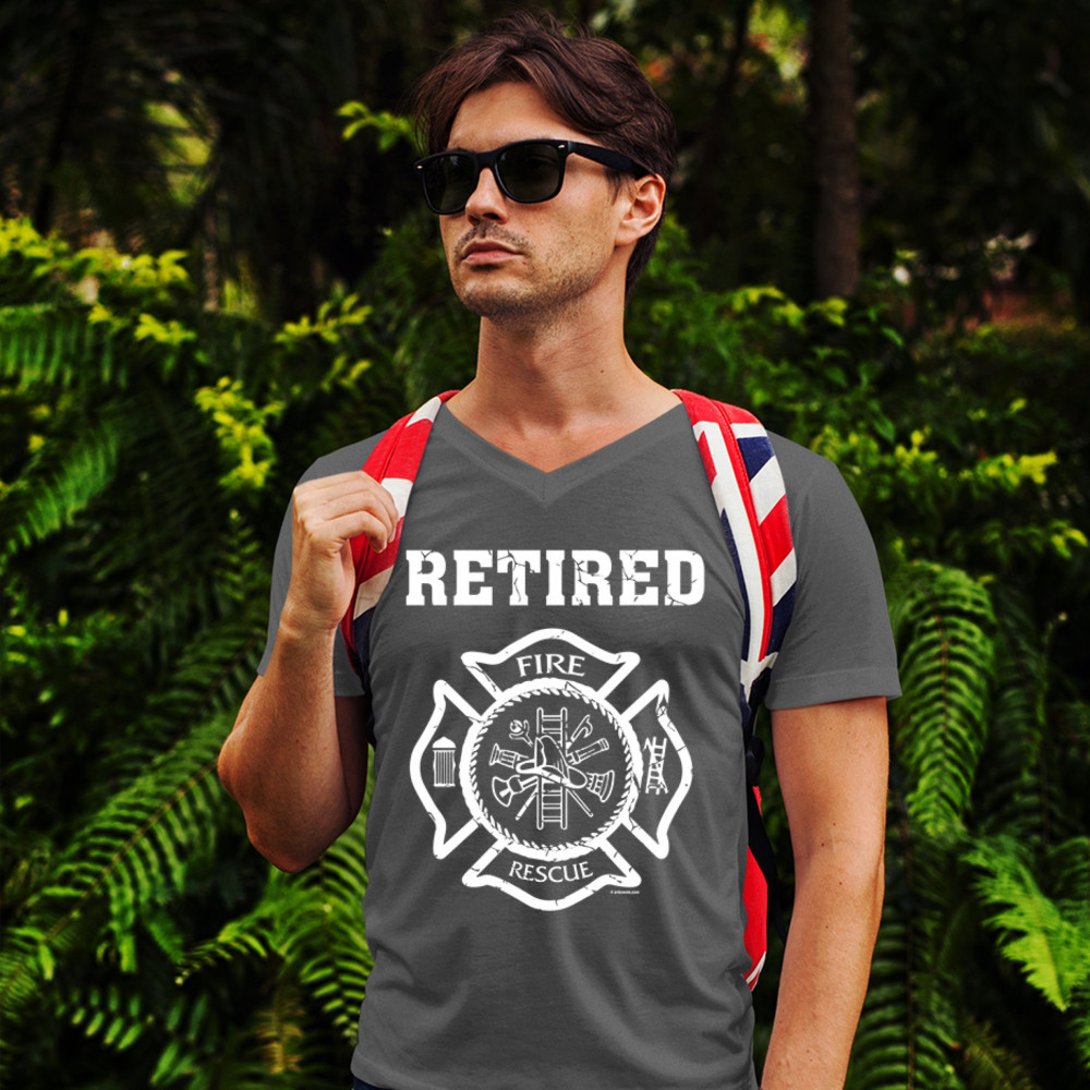 RETIRED FIREFIGHTER BADGE v-neck t-shirt fire and rescue fire department tee charcoal