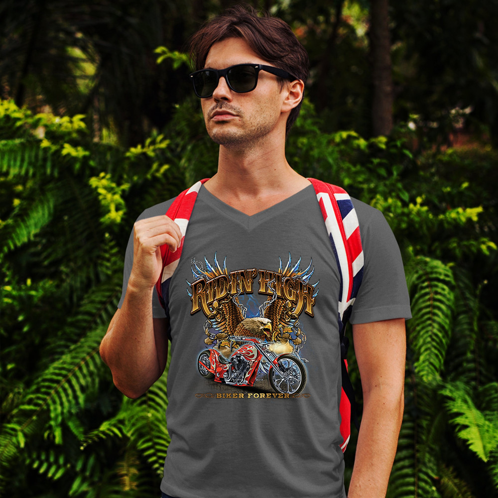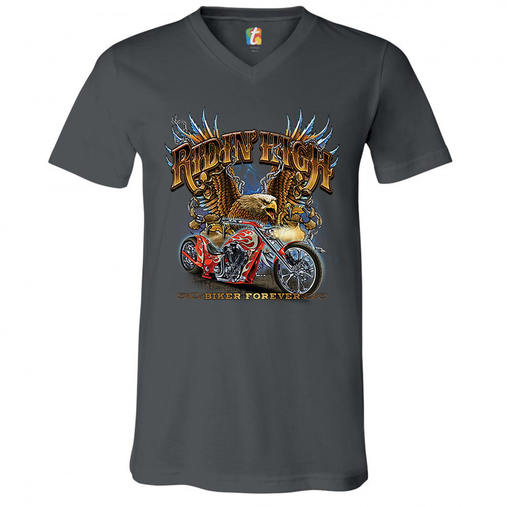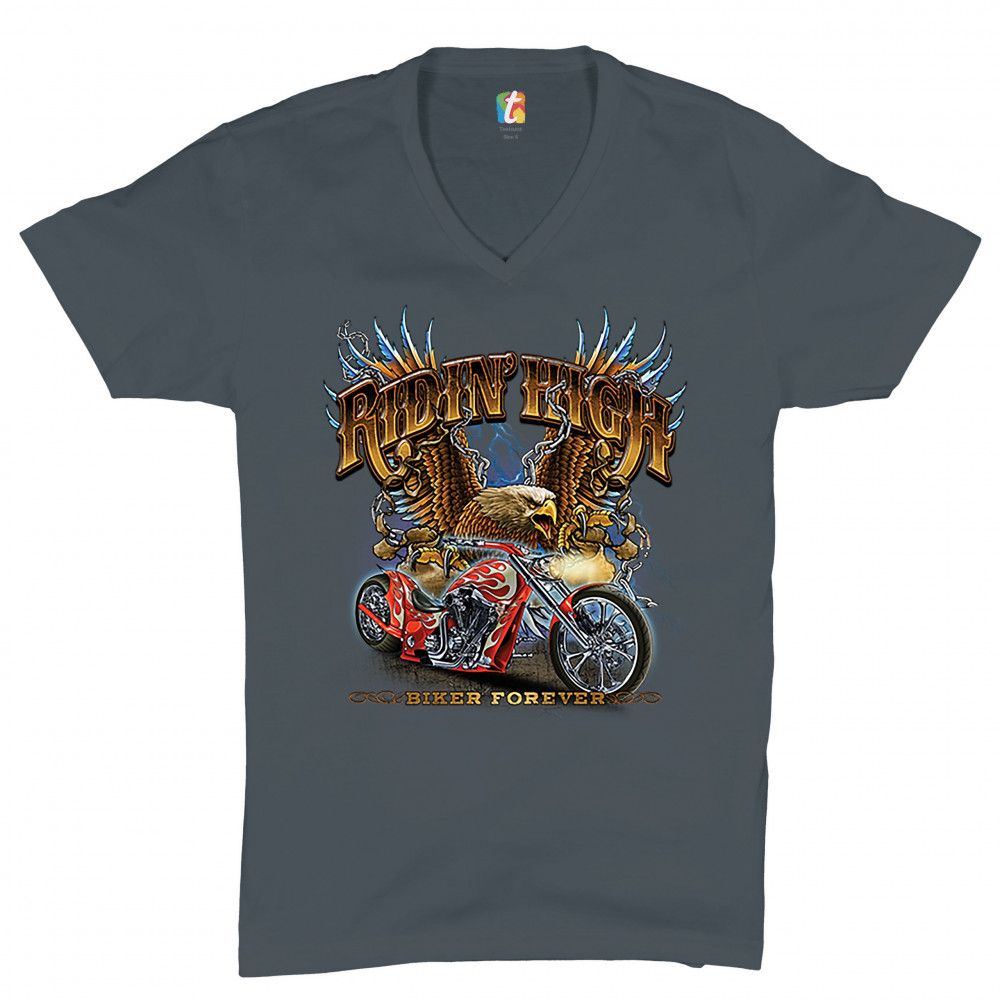 RIDIN' HIGH v-neck t-shirt biker forever chopper rider american eagle tee charcoal