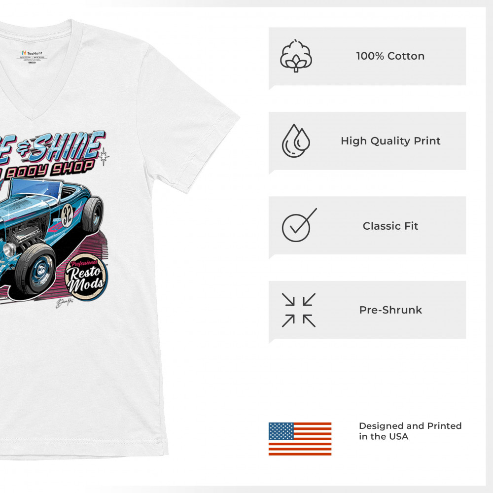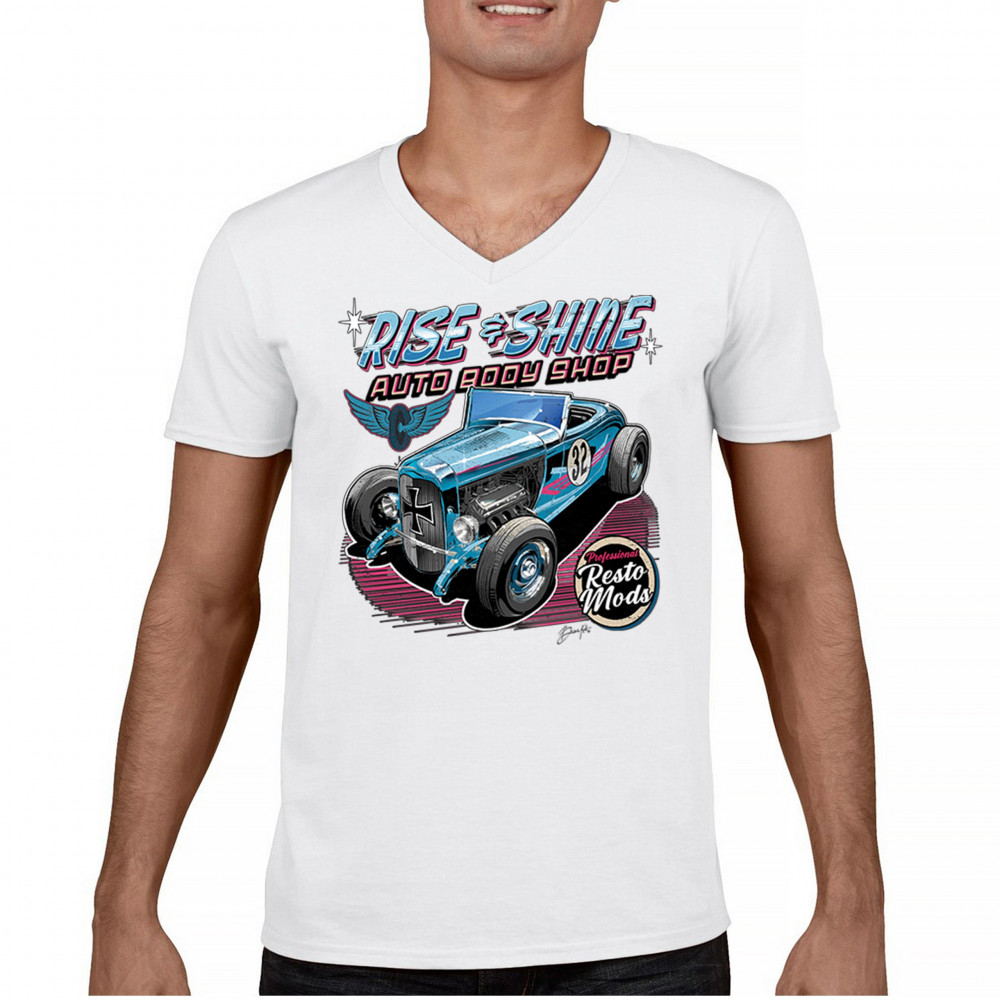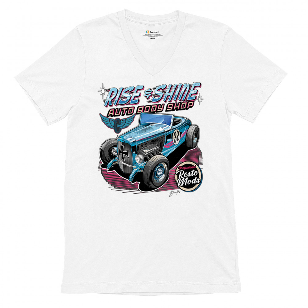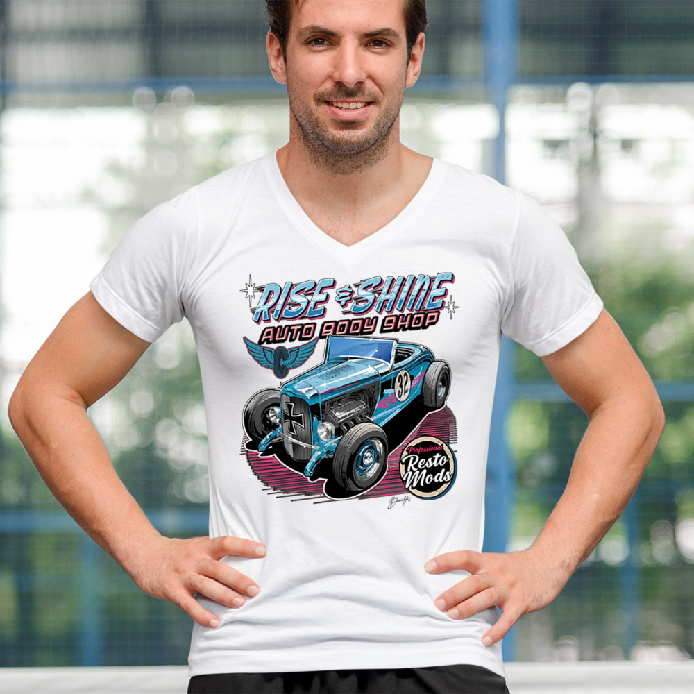Our "Rise & Shine Auto Body Shop" design is a tribute to classic car culture and professional resto mods. This striking graphic showcases a vintage hot rod, perfect for car enthusiasts and auto restoration fans. Whether you're hitting the car show circuit or working in your garage, this design adds a touch of retro charm to your look. Crafted from premium materials, it offers both comfort and durability, ensuring it stands up to your active lifestyle. Celebrate the art of automotive restoration with this standout design.