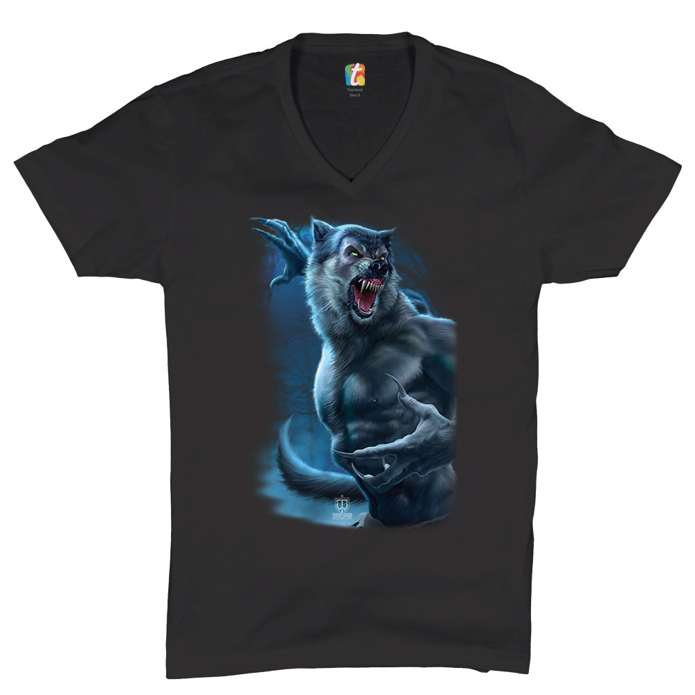 ROARING WEREWOLF v-neck t-shirt halloween horror scary gothic monster tee black