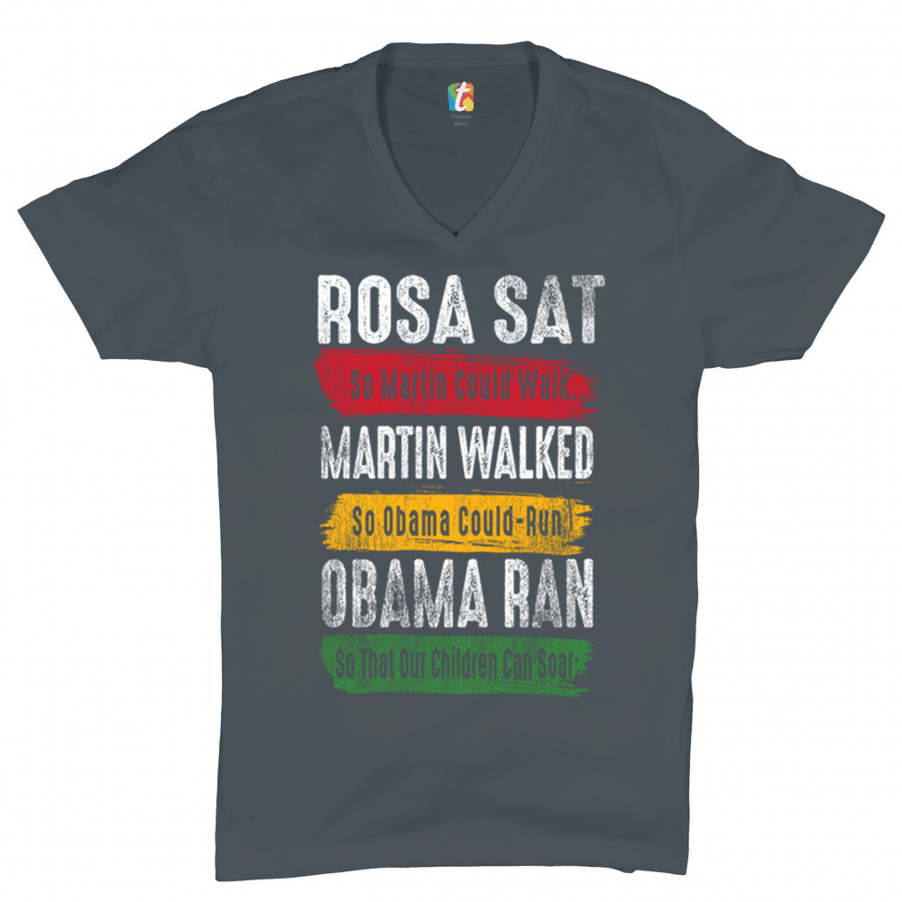 ROSA SAT MARTIN WALKED OBAMA RAN v-neck t-shirt blm civil rights equality tee charcoal