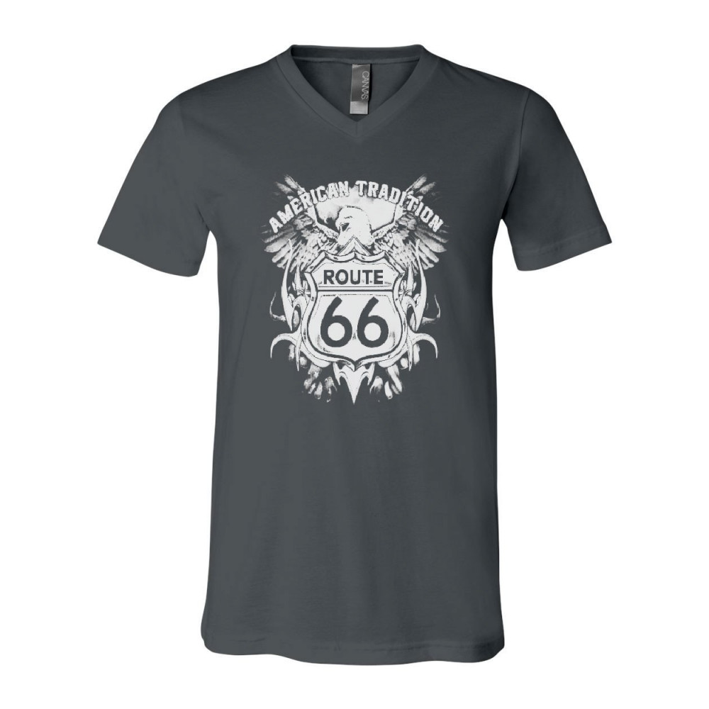 ROUTE 66 AMERICAN TRADITION v-neck t-shirt biker motorcycle tee charcoal