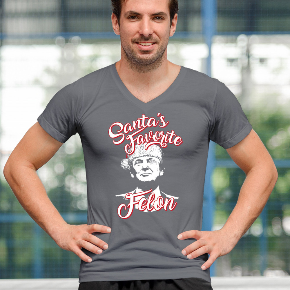 Mix humor and holiday cheer with the "Santa's Favorite Felon" design. Perfect for Christmas parties, gifts, or festive mornings with a political twist!