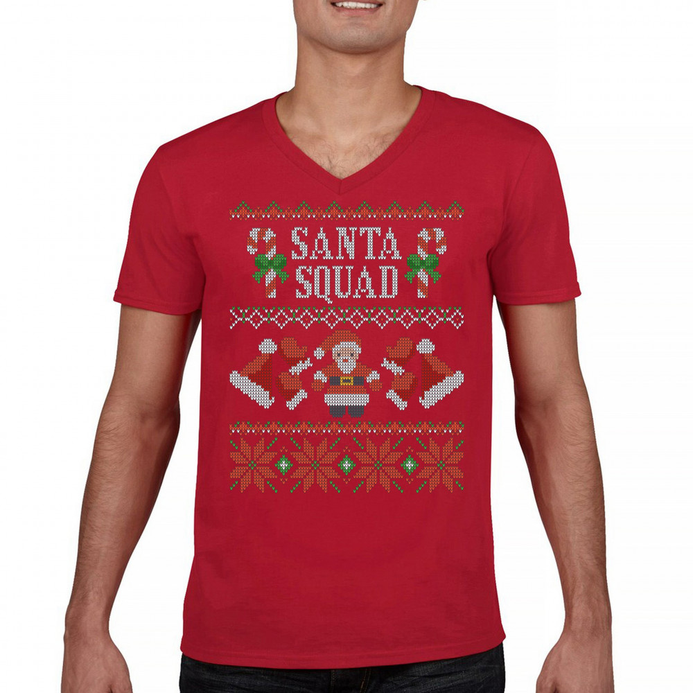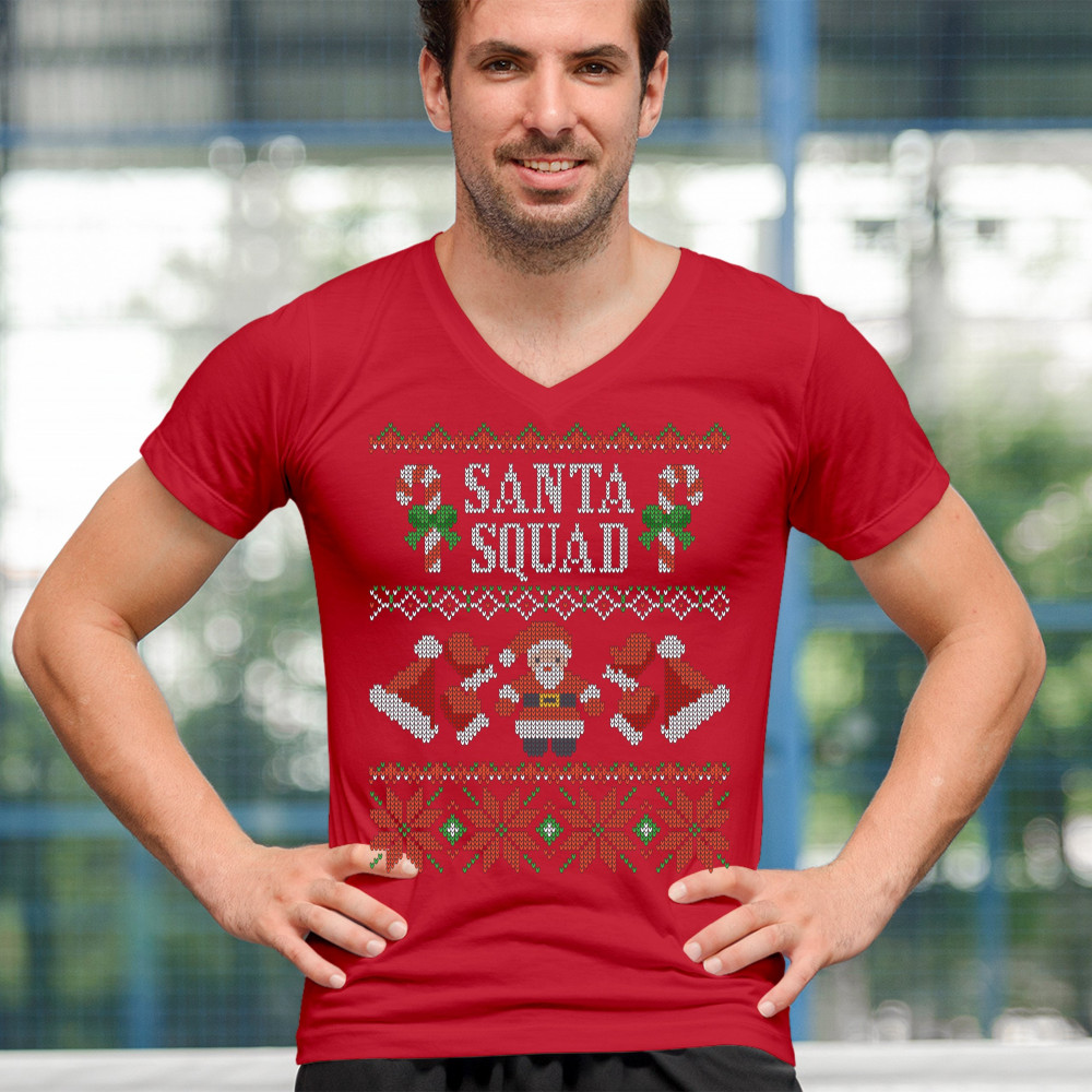 SANTA SQUAD v-neck t-shirt cute ugly sweater merry and bright christmas tee red