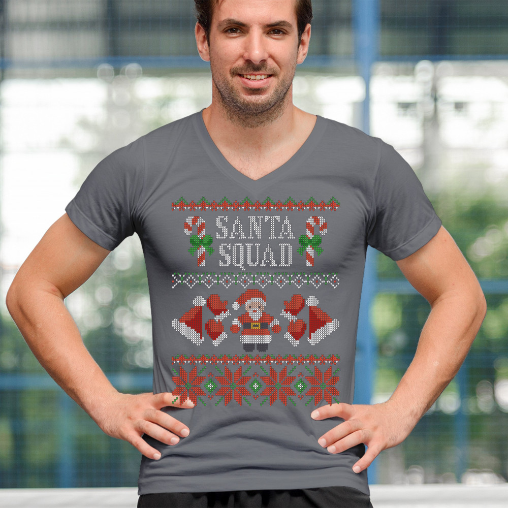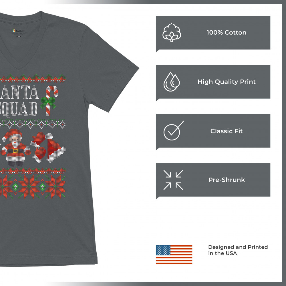 SANTA SQUAD v-neck t-shirt cute ugly sweater merry and bright christmas tee charcoal