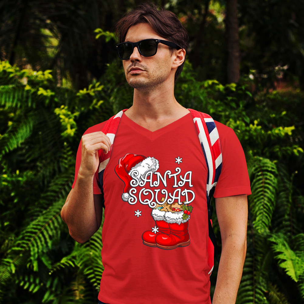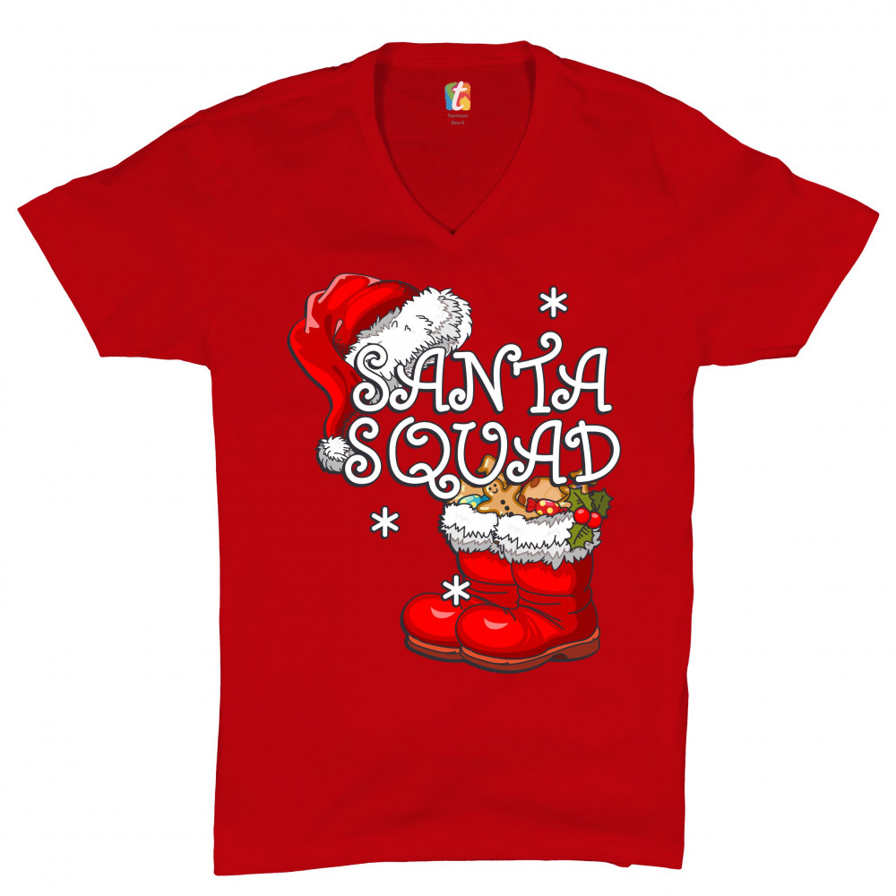 SANTA SQUAD v-neck t-shirt merry christmas reindeer rudolph elf funny tee red