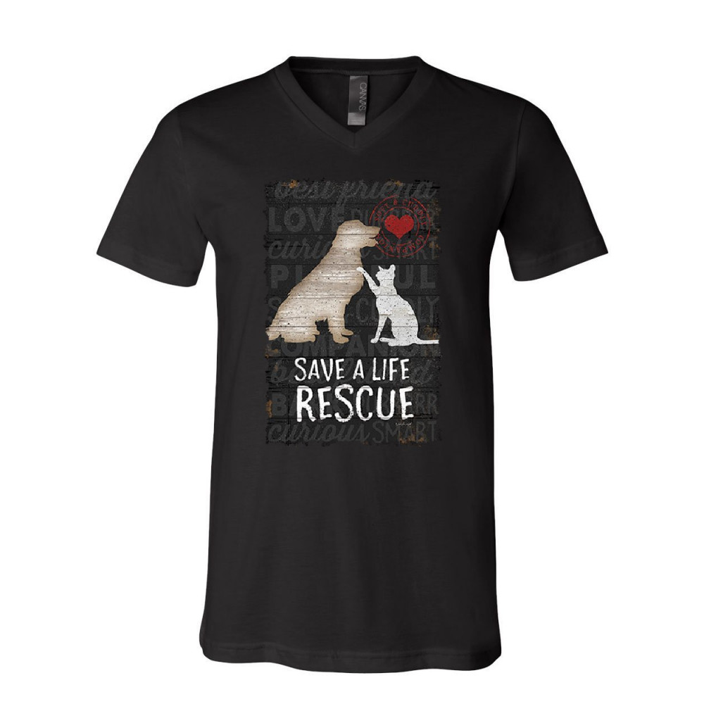 SAVE A LIFE rescue a pet v-neck t-shirt dog cat kitty puppy shelter paw tee black
