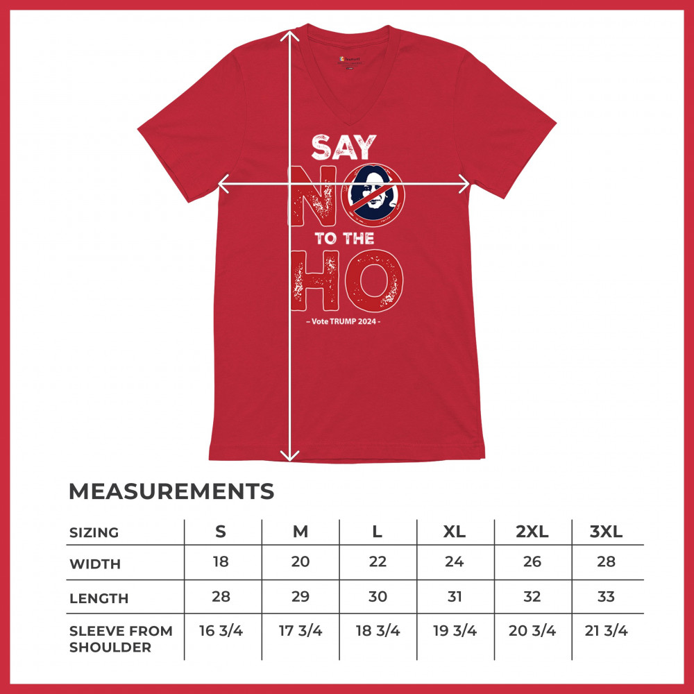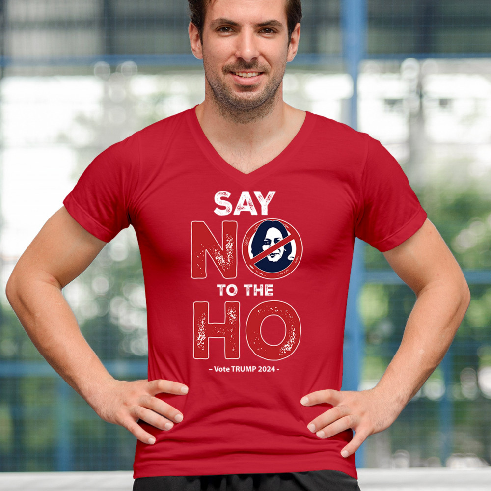 Show your conservative spirit with the "Say No to the Ho" print, perfect for rallies or daily wear. Support Trump-Vance 2024 and Make America Great Again.