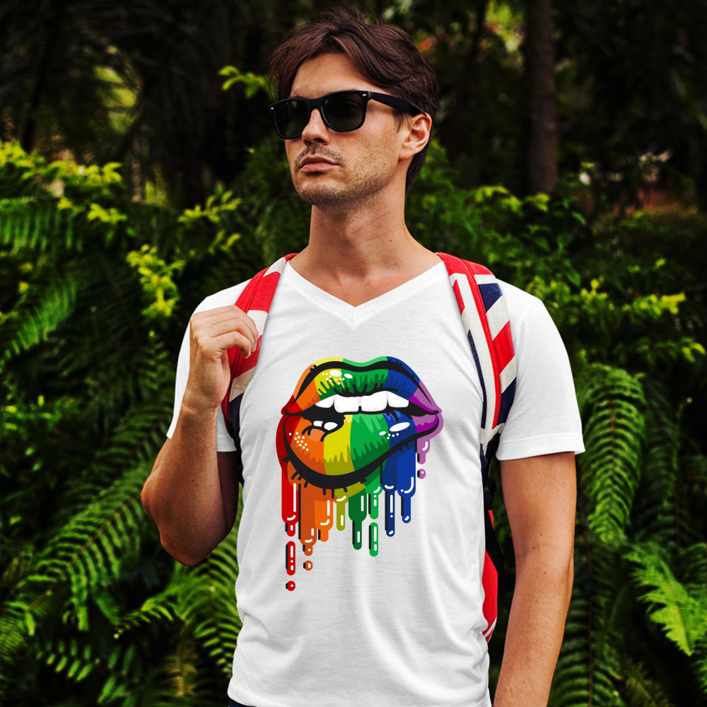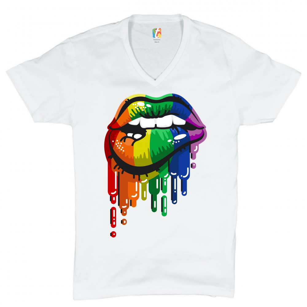 SEXY MELTING RAINBOW LIPS v-neck t-shirt lgbt queer gay pride love wins tee white