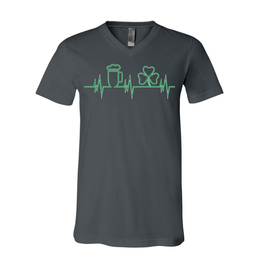 SHAMROCK & BEER HEARTBEET shamrock beer heartbeet v-neck t-shirt st. patrick's day irish drinking tee charcoal