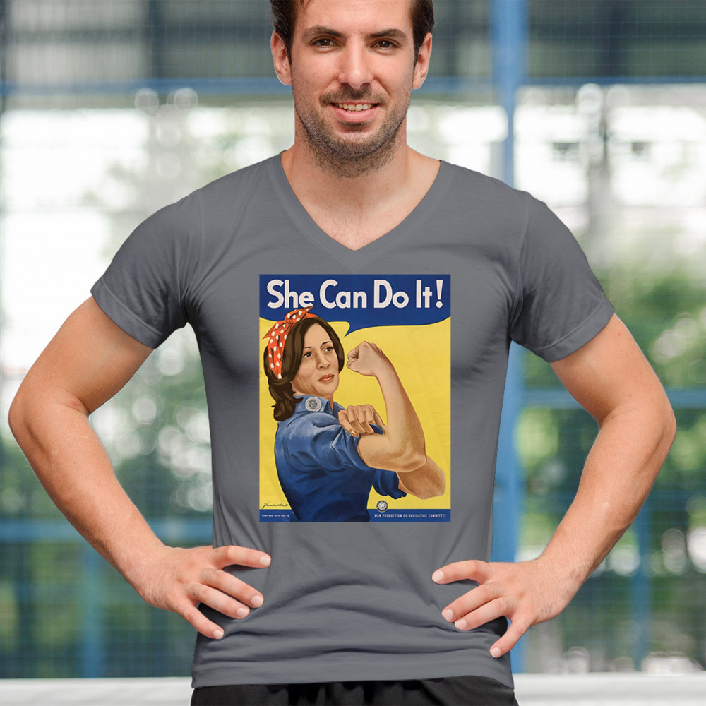 Show your support for Kamala Harris in 2024 with this empowering "She Can Do It!" design. Inspired by Rosie the Riveter, it symbolizes strength, equality, and progress.