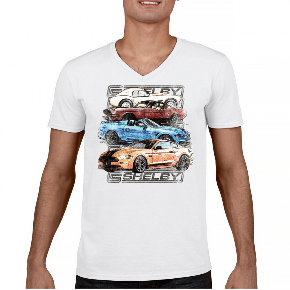 SHELBY CARS SKETCH v-neck t-shirt mustang racing gt cobra powered by ford tee white