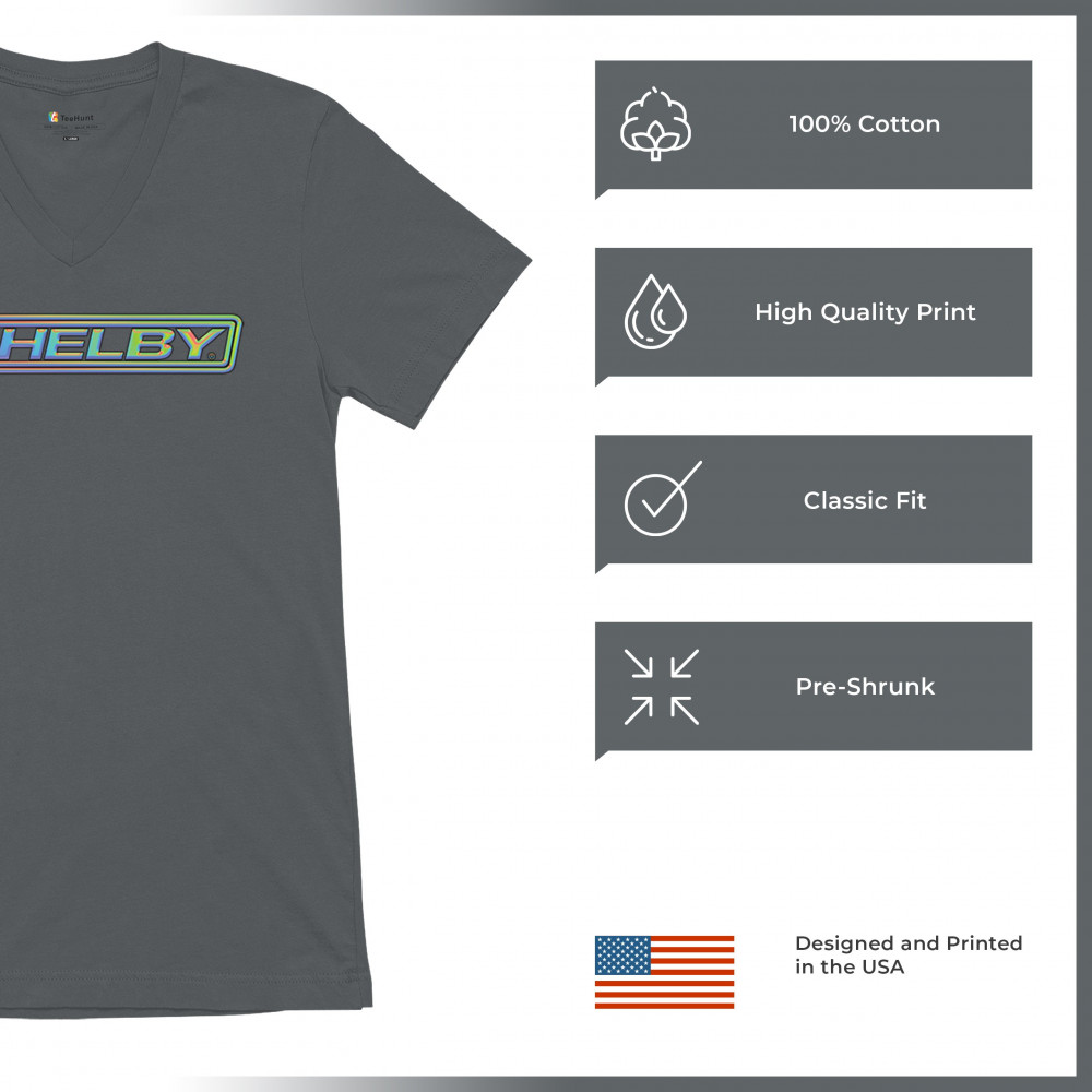 This holographic Shelby logo is an electrifying salute to an enduring legend of the American racetrack. It embodies the storied history of Carroll Shelby's vision, from the powerful drag of a GT350 to the robust growl of a GT500. Embrace the drift and drive that has defined the Mustang, captured in apparel that's perfect for any enthusiast's collection—be it a tshirt, hoodie, hat, or jacket. This licensed design honors years of muscle innovation, a true gift for the die-hard fan.