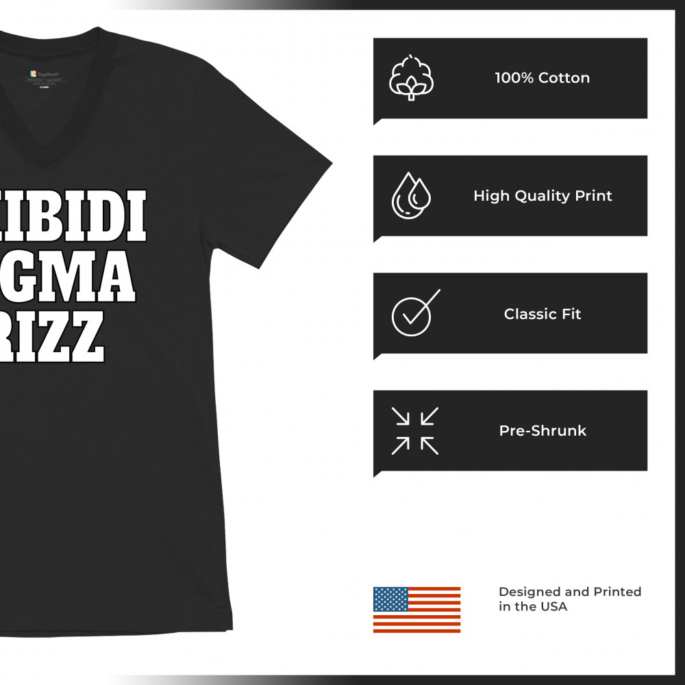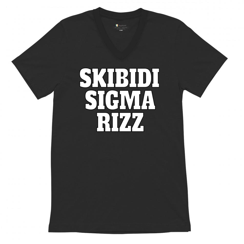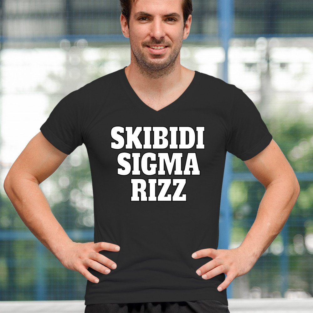 SKIBIDI SIGMA RIZZ men's v-neck t-shirt funny goat gyatt meme zoomer viral black