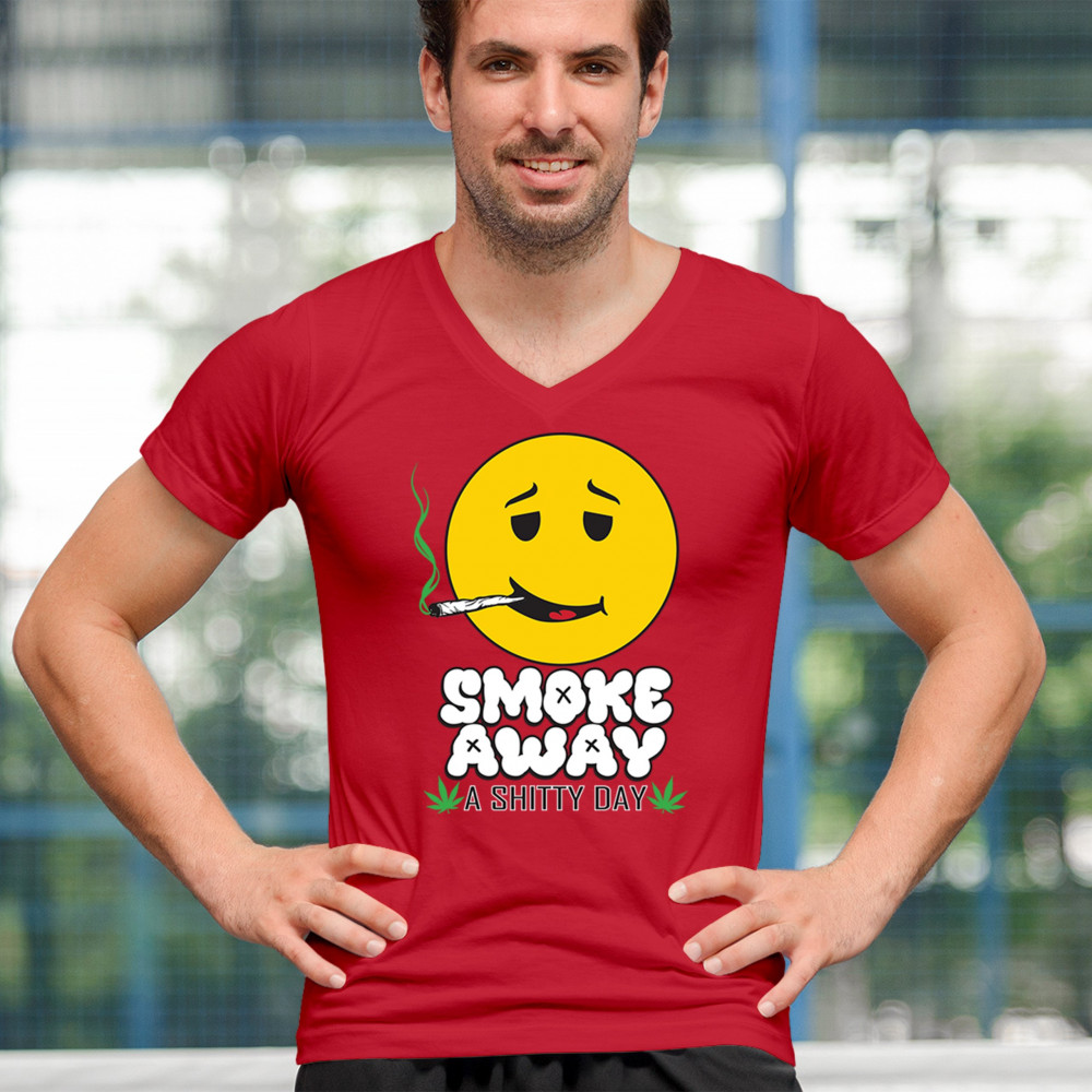 Smiley face with joint and “Smoke Away a Sh*tty Day†message. A perfect cannabis design for stoners, chillers, and sarcastic stress relief.