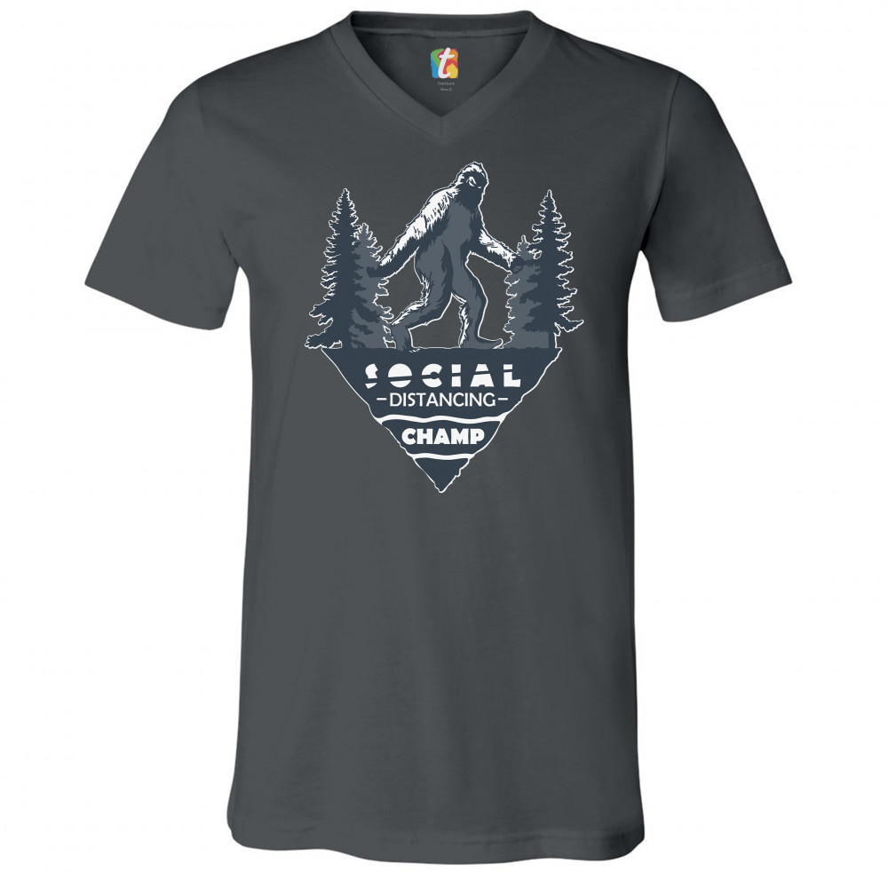 SOCIAL DISTANCING CHAMP v-neck t-shirt funny bigfoot yeti virus quarantine tee charcoal