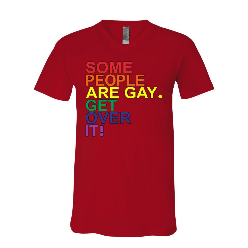 SOME PEOPLE ARE GAY. GET OVER IT! v-neck t-shirt lgbtq pride rainbow tee red