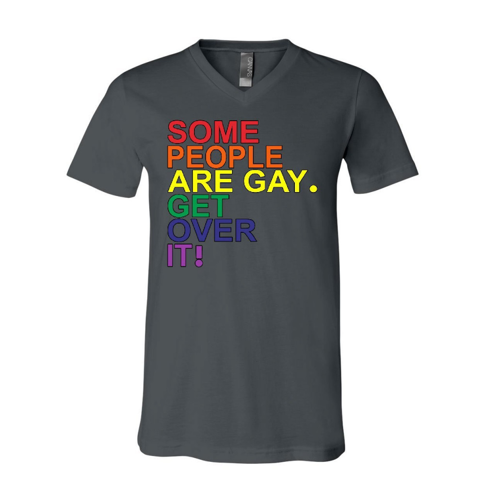 SOME PEOPLE ARE GAY. GET OVER IT! v-neck t-shirt lgbtq pride rainbow tee charcoal
