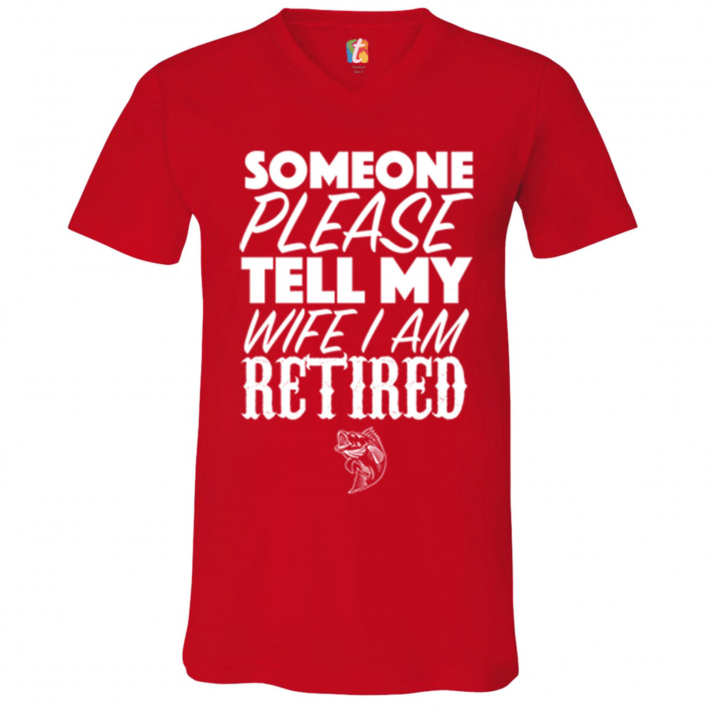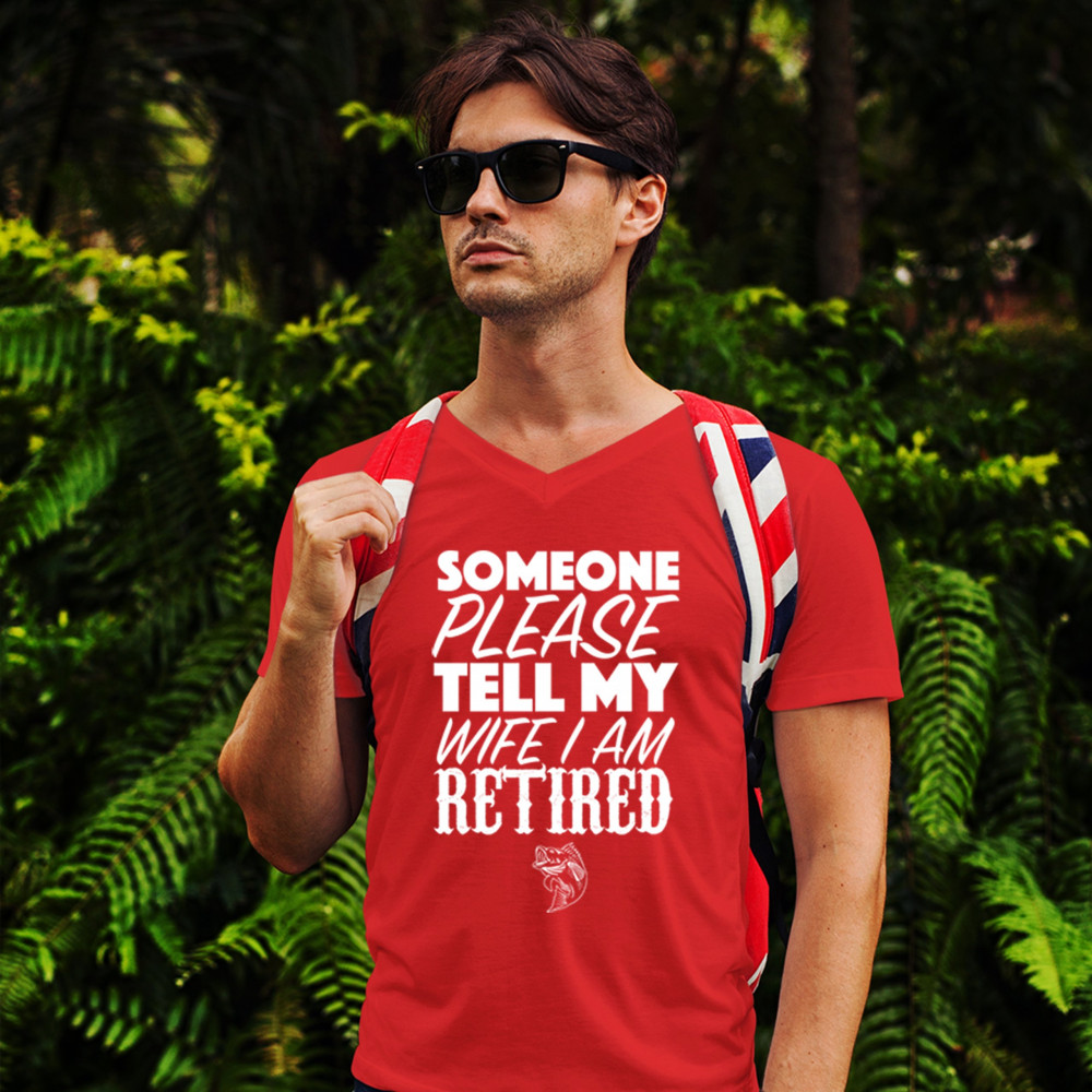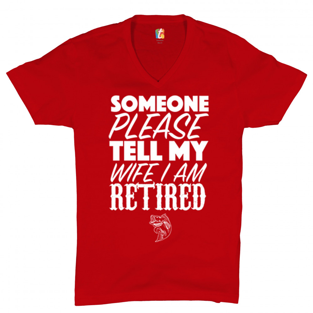 SOMEONE PLEASE TELL MY WIFE I AM RETIRED v-neck t-shirt father's day tee red