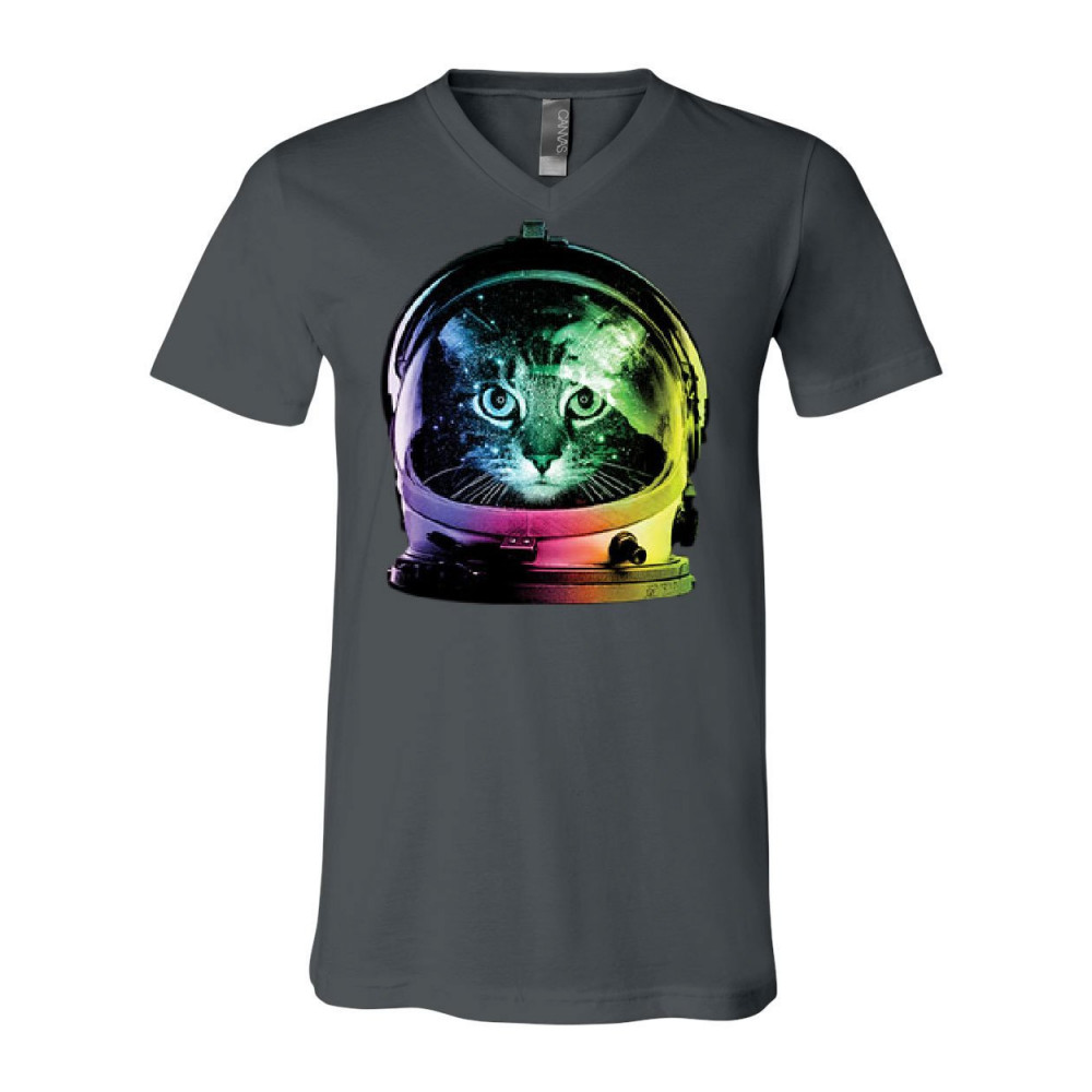 SPACE CAT v-neck t-shirt astronaut kitten neon galaxy tee charcoal