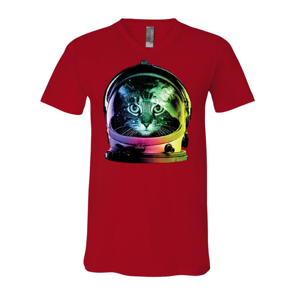 SPACE CAT v-neck t-shirt astronaut kitten neon galaxy tee red