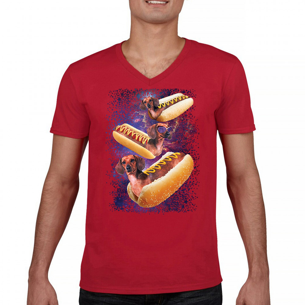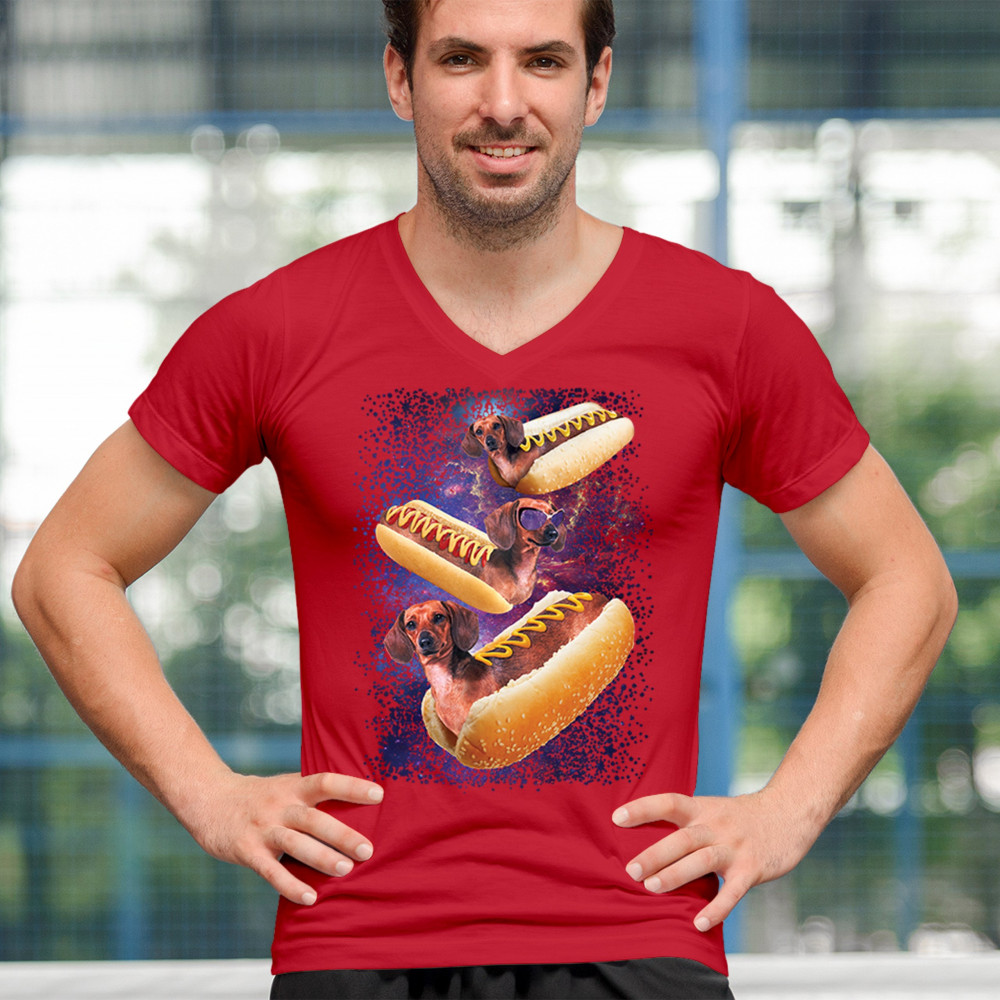 Add a dash of humor to your wardrobe with our unique design featuring adorable dachshunds as hotdogs in a cosmic setting. This playful graphic is perfect for animal lovers and those with a quirky sense of style. The vibrant colors and detailed illustration ensure you stand out in any crowd. Made from premium materials, this tee offers both comfort and durability, making it ideal for everyday wear or special occasions. Embrace your love for dogs and space with this fun and imaginative design.