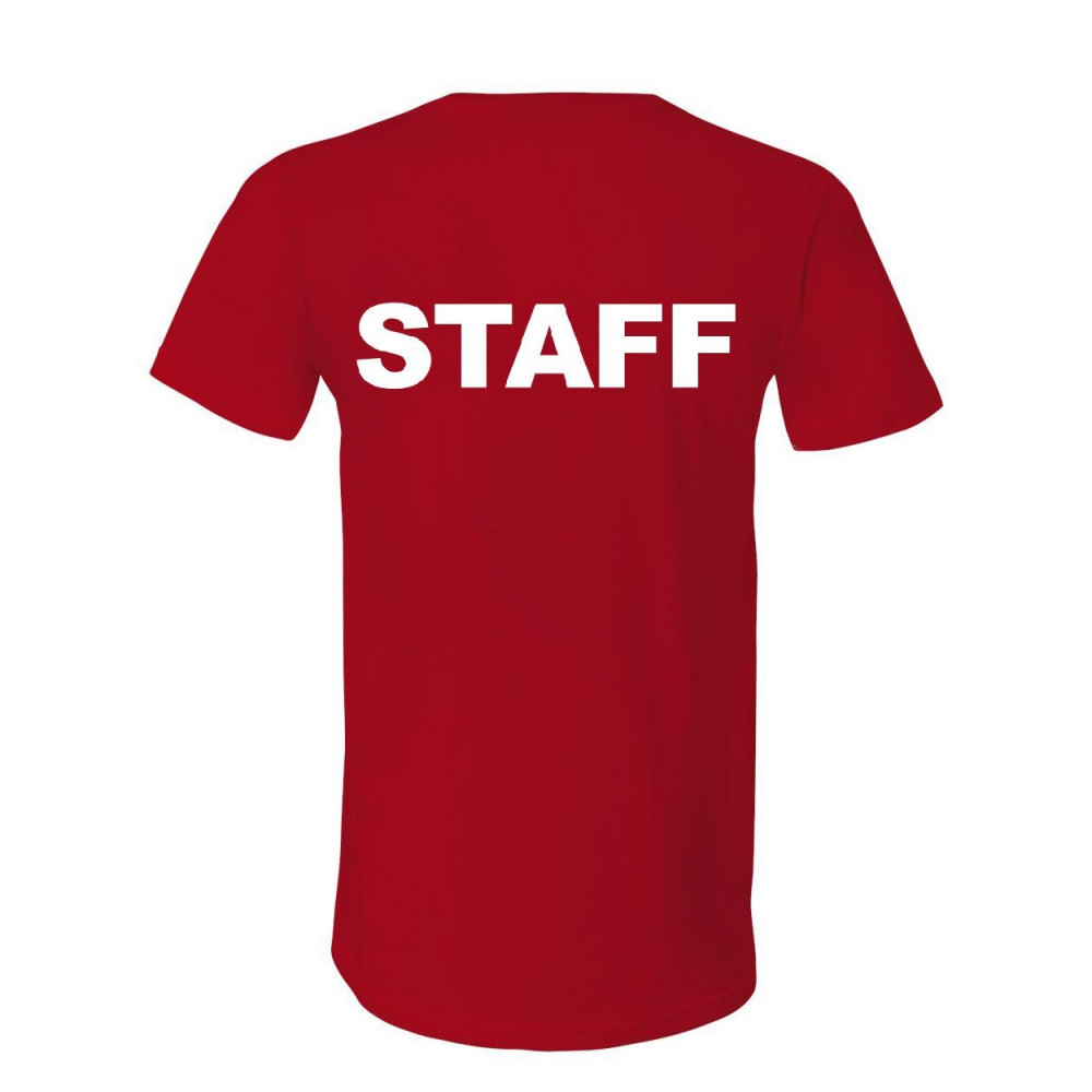 STAFF v-neck t-shirt event uniform employee party security tee red