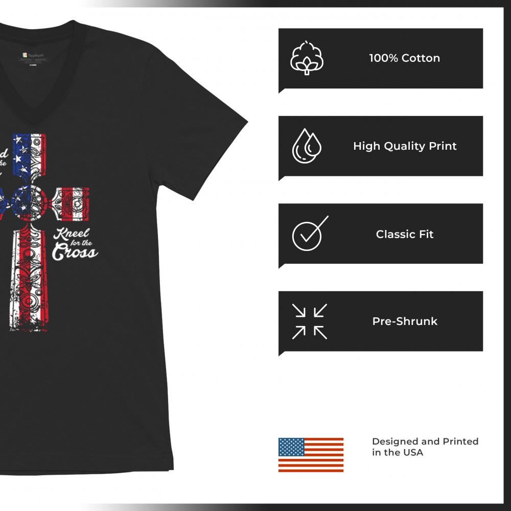 Unite under the banner of freedom and faith with our Stand for the Flag Kneel for the Cross design, a testament to the enduring values that define America. This Trump shirt combines reverence for the American flag with reverence for Jesus Christ, symbolized by the powerful Punisher logo. As a Christian patriot and supporter of our military, proudly uphold the principles of the 2nd Amendment. Let this shirt be a reminder of the strength found in both flag and cross.