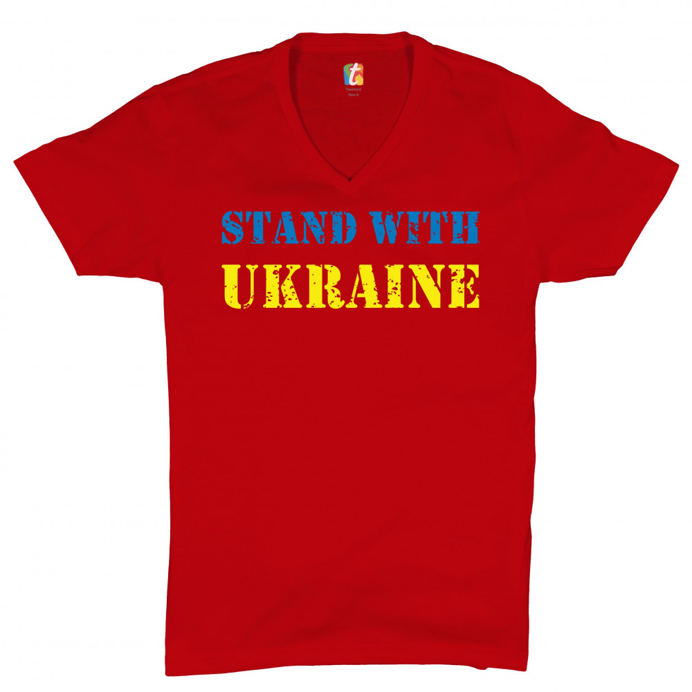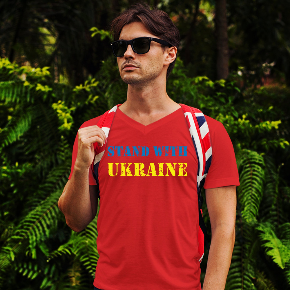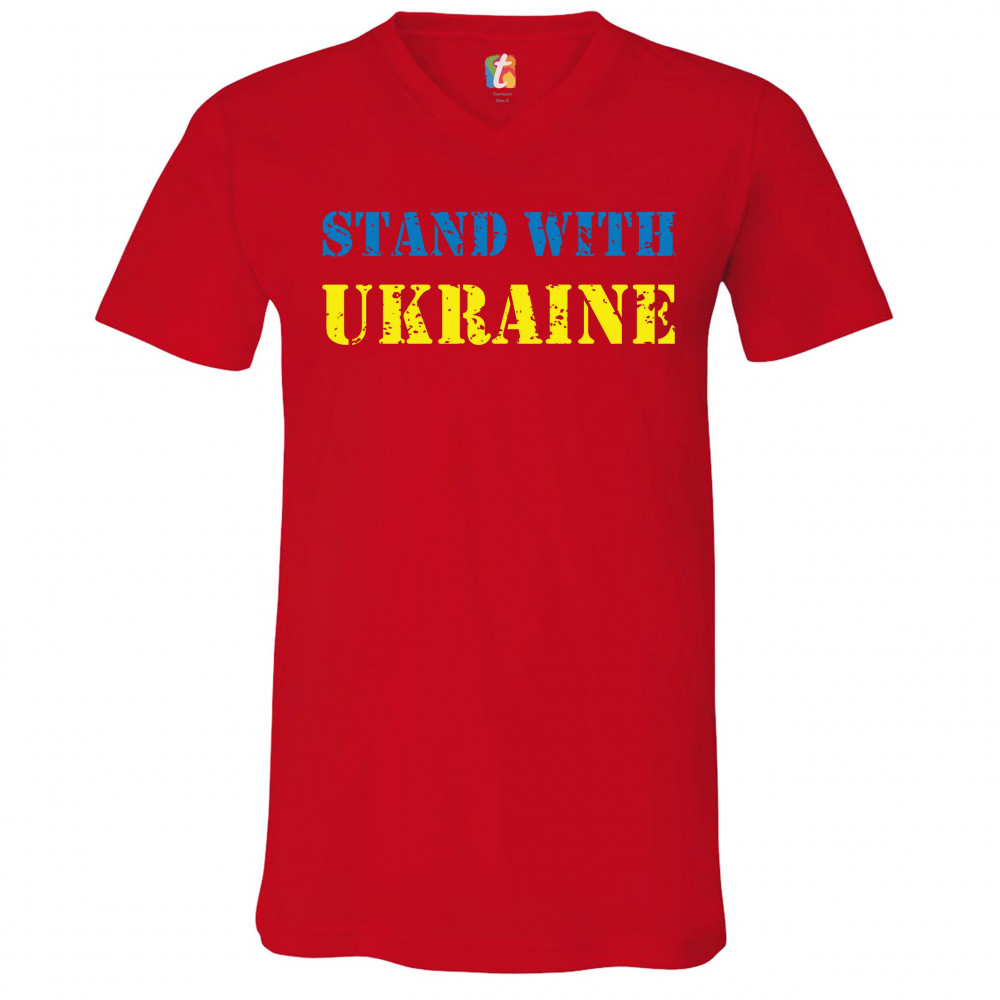 STAND WITH UKRAINE v-neck t-shirt stop war support ukrainians tee red