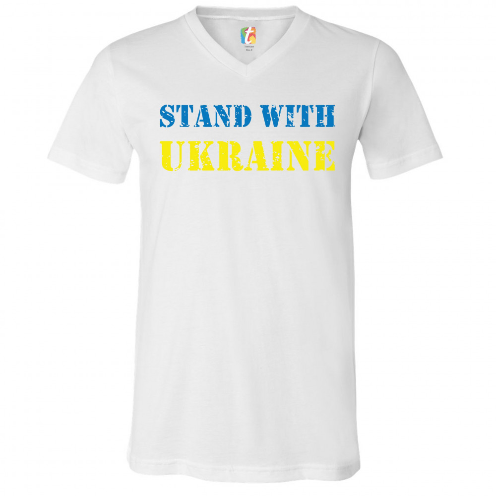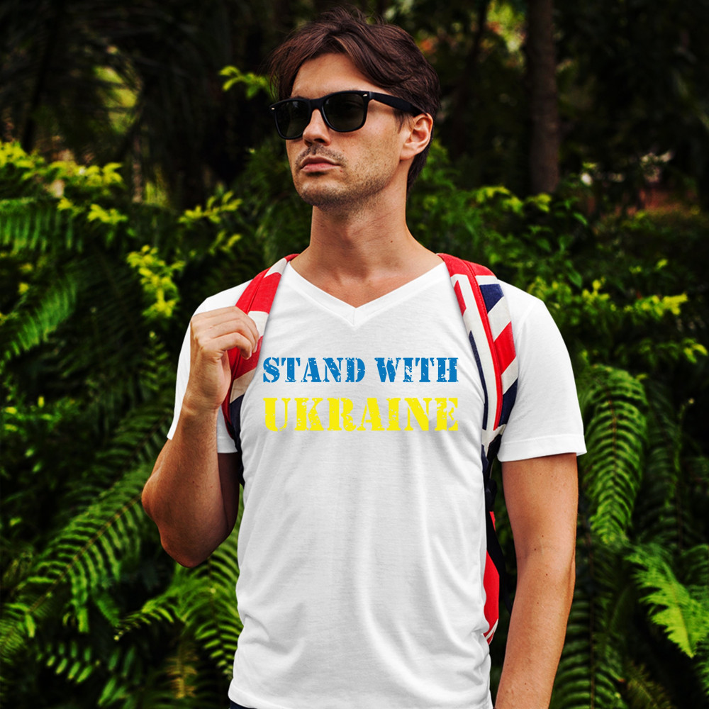 STAND WITH UKRAINE v-neck t-shirt stop war support ukrainians tee white