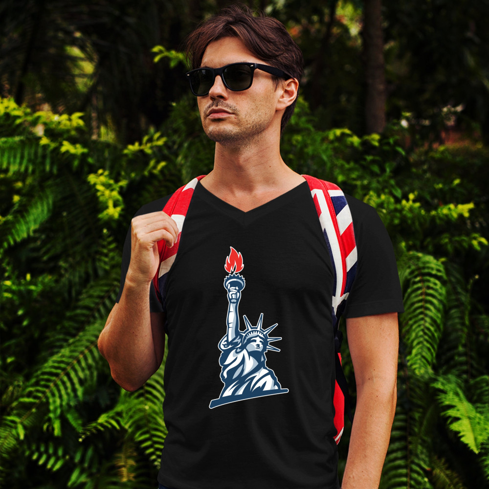 STATUE OF LIBERTY v-neck t-shirt manhattan new york 4th of july freedom tee black