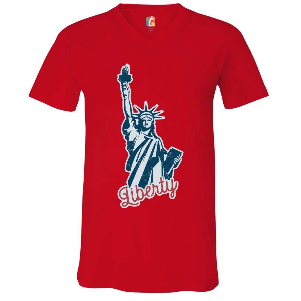 STATUE OF LIBERTY v-neck t-shirt freedom independence 4th of july nyc usa tee red