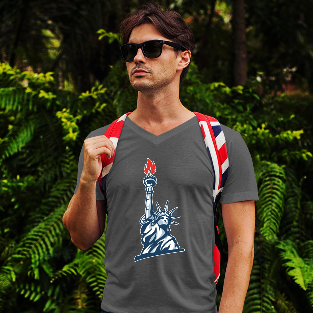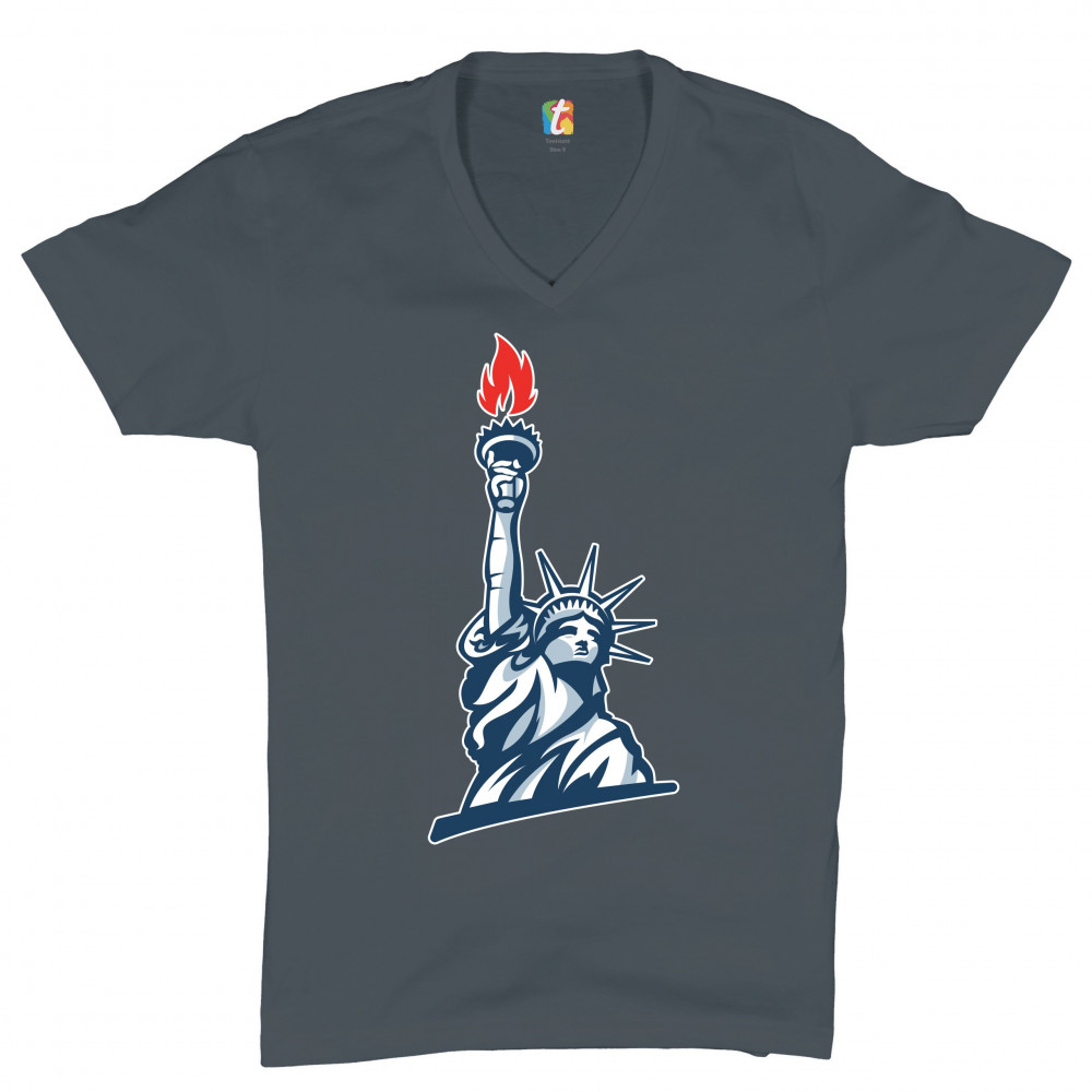 STATUE OF LIBERTY v-neck t-shirt manhattan new york 4th of july freedom tee charcoal