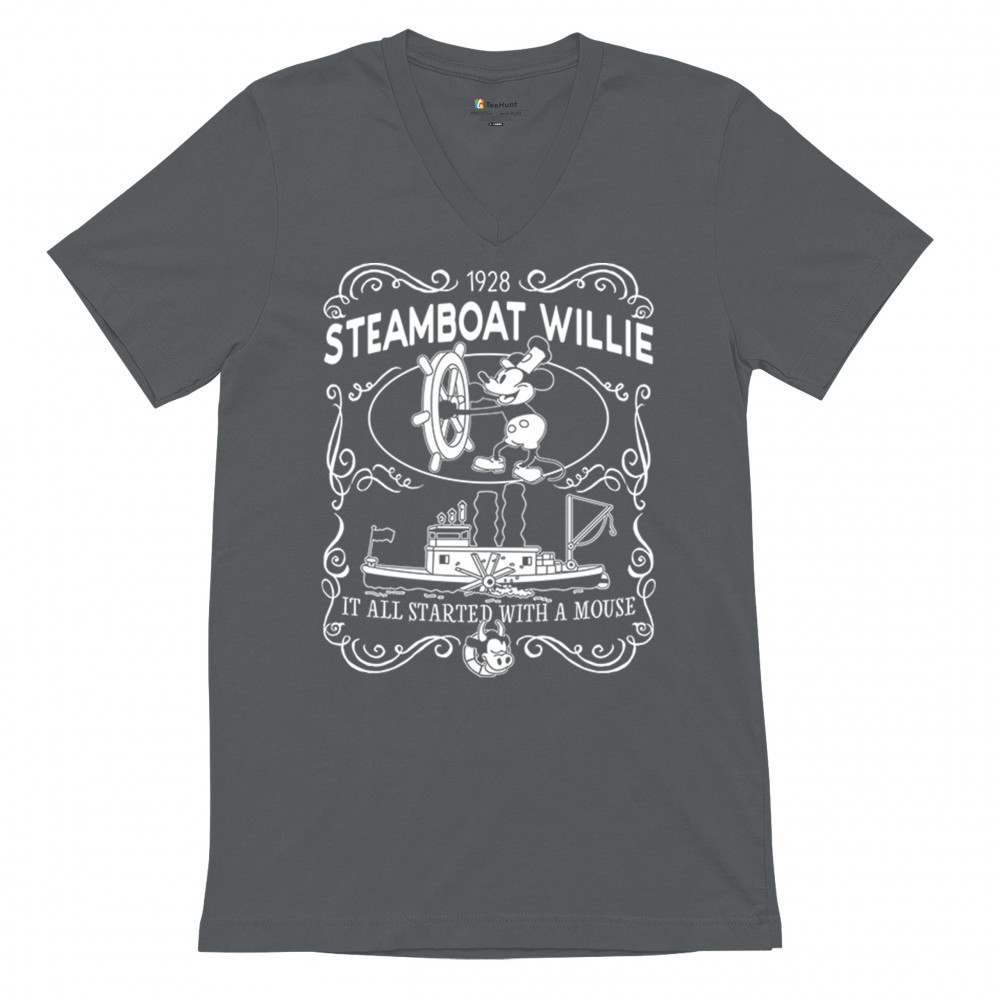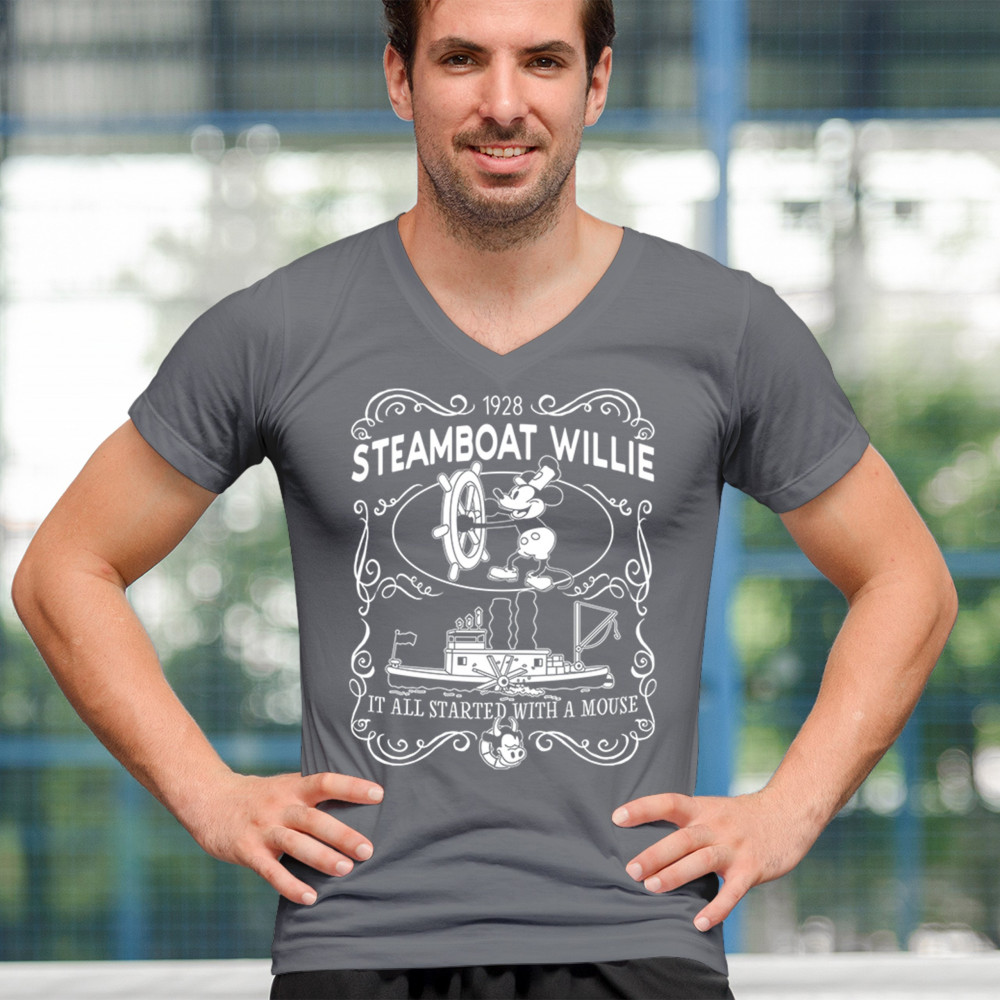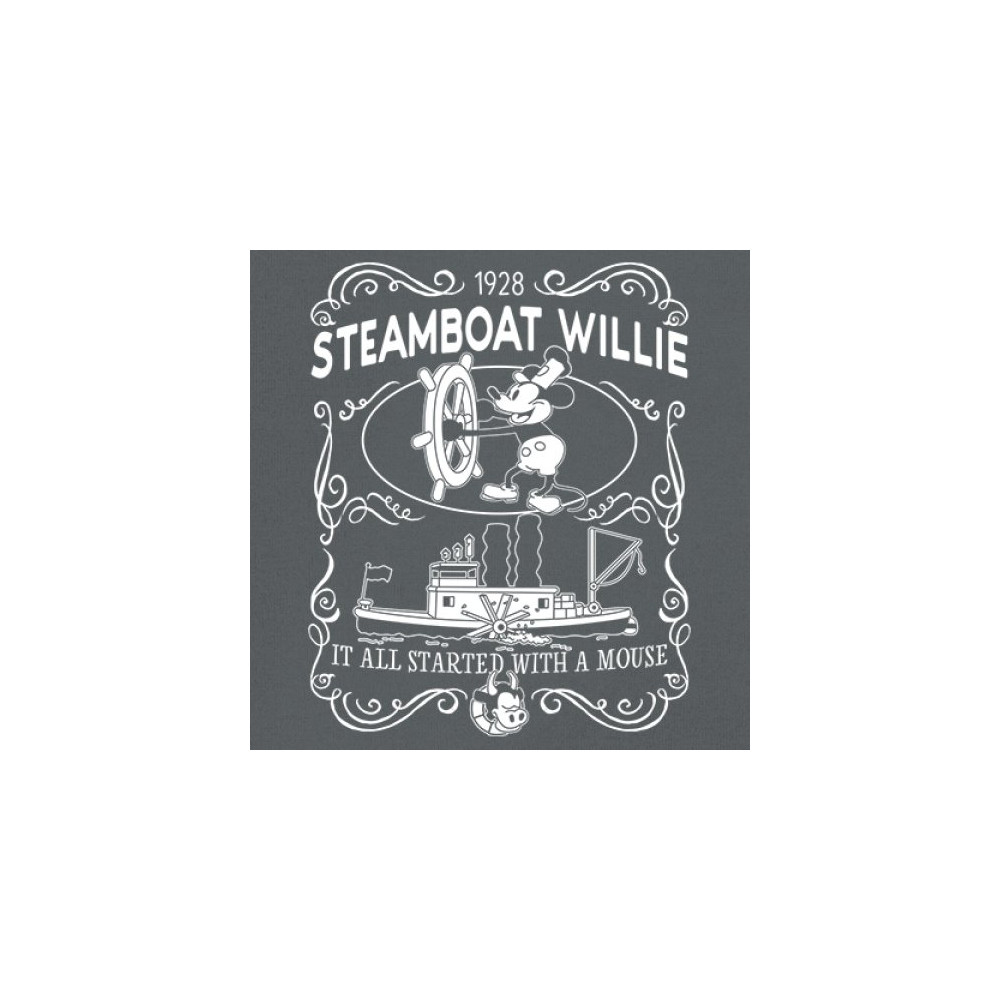 Set sail through the annals of animation as Steamboat Willie commands the vessel, echoing the timeless refrain, 'It all began with a mouse.