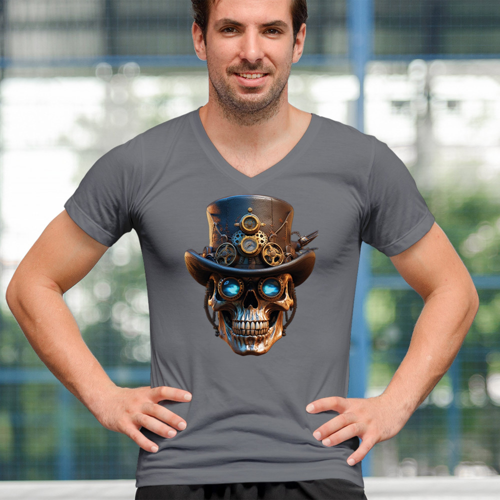 Steampunk skull shirt with gothic retro-futurism. Perfect for Halloween, cosplay, biker rallies, and edgy rebel fashion lovers.