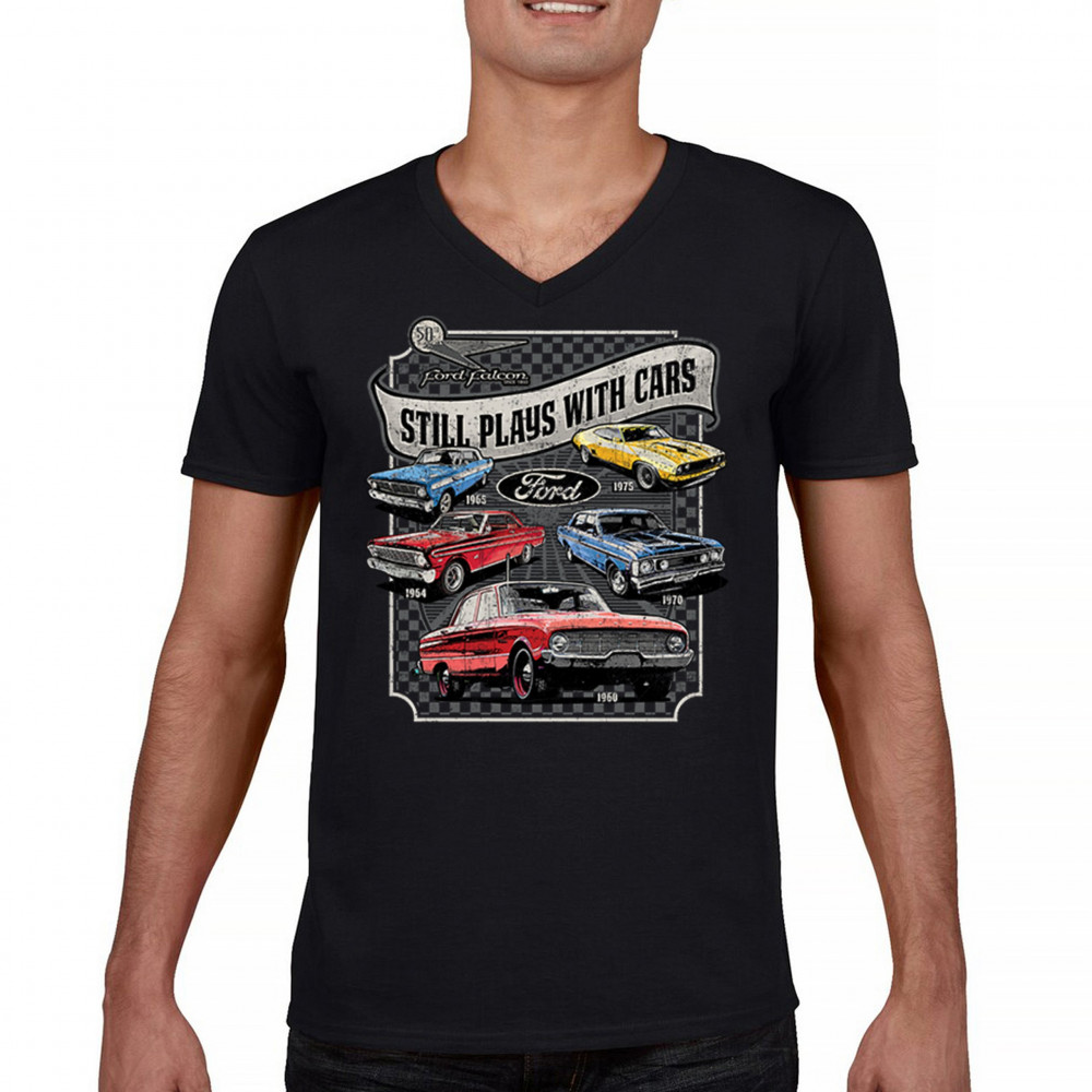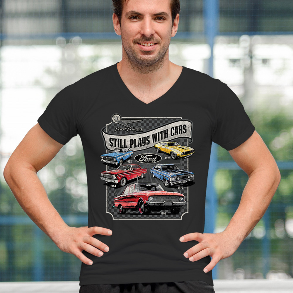 Still Plays With Cars pays tribute to the Ford Falcon, showcasing legendary models from the 60s and 70s for true vintage car lovers. Perfect for gearheads, hot rod fans, and classic car collectors, this design celebrates retro automobile culture, vintage horsepower, and old school rides. A great value piece for anyone devoted to the classic car scene.