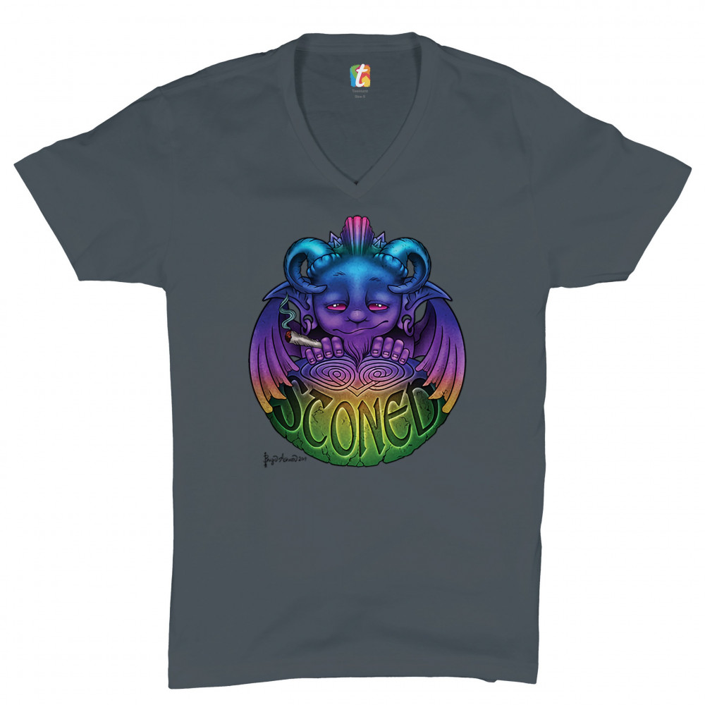 STONED GARGOYLE v-neck t-shirt pot marijuana joint funny weird 420 tee charcoal