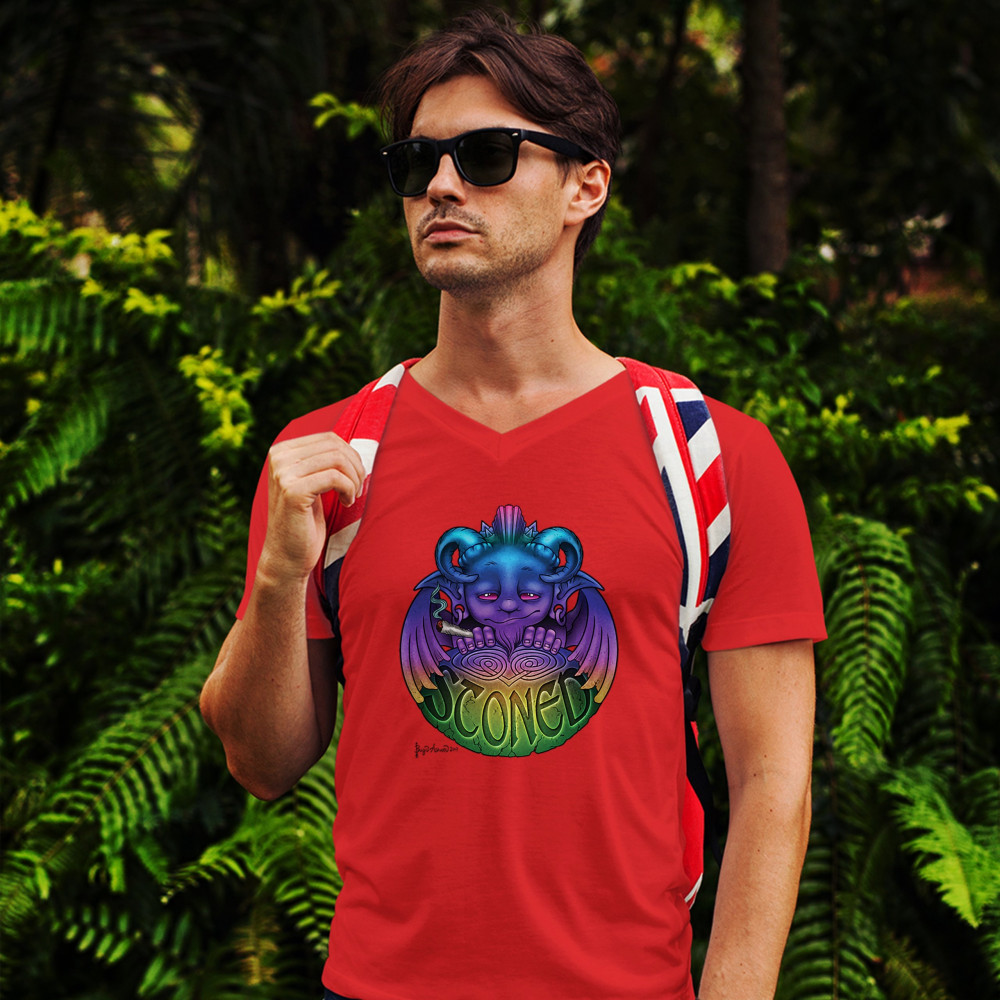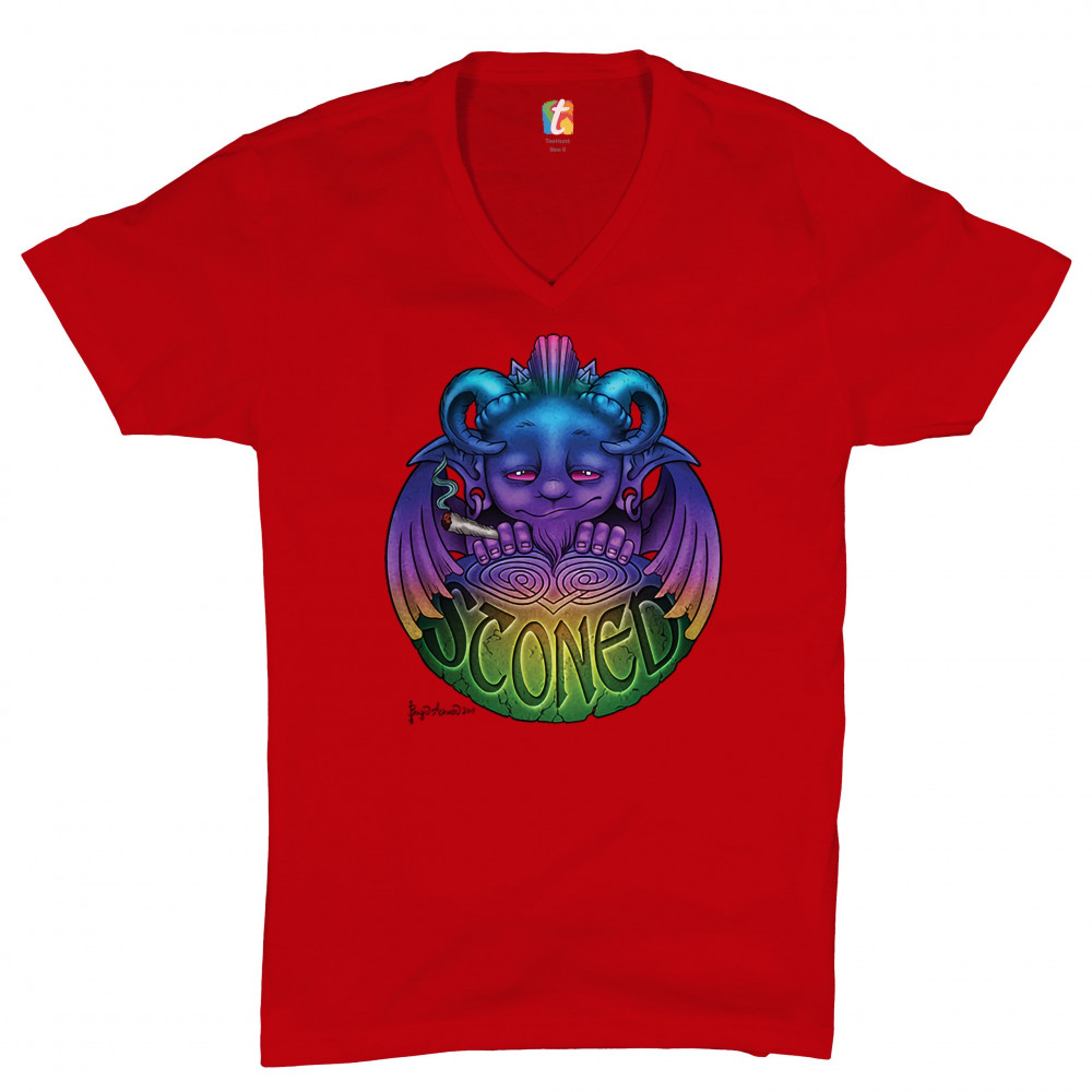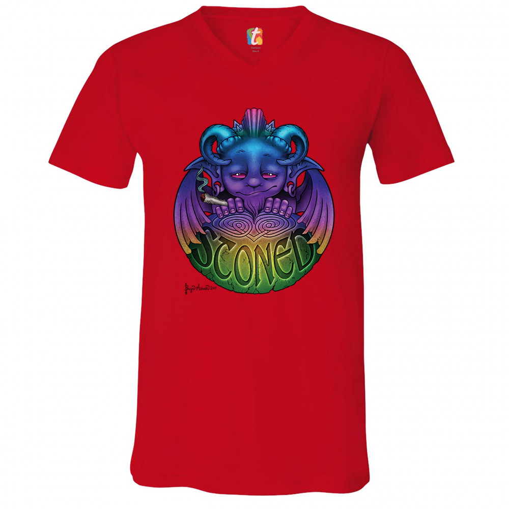 STONED GARGOYLE v-neck t-shirt pot marijuana joint funny weird 420 tee red