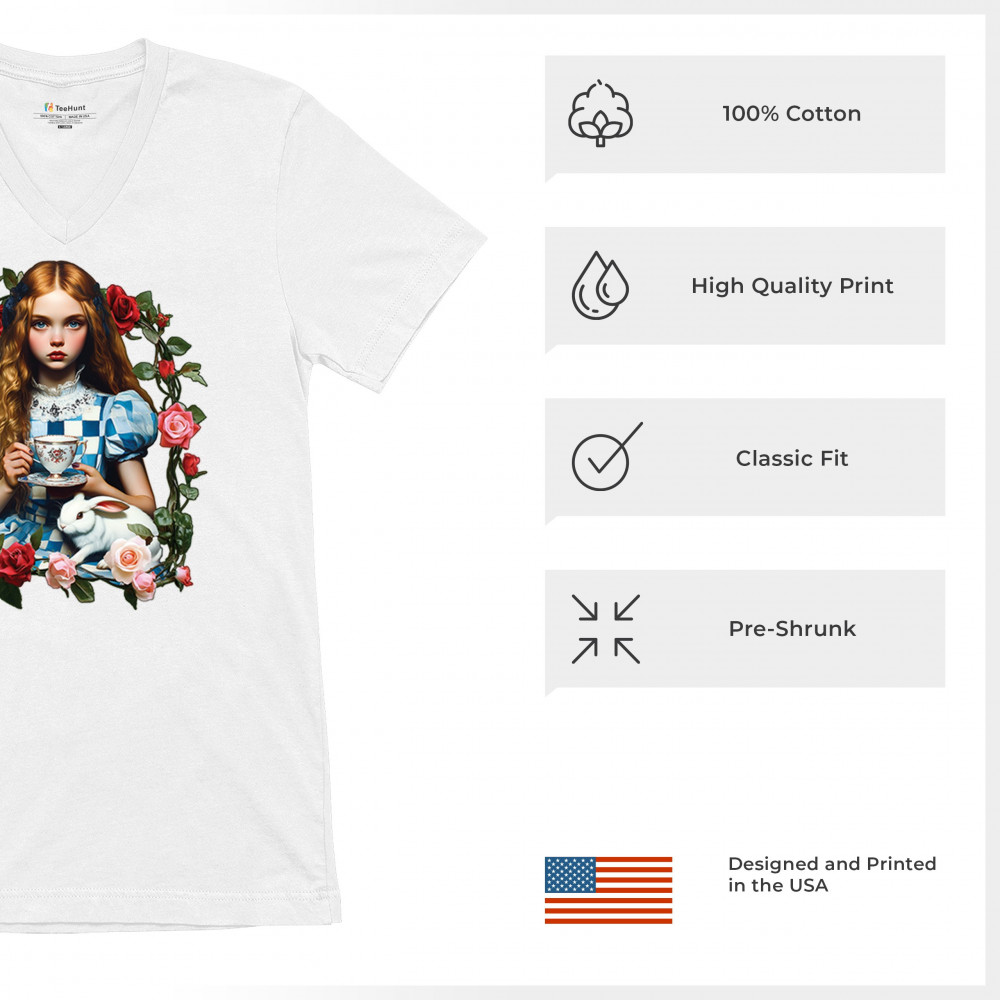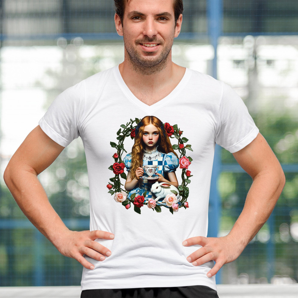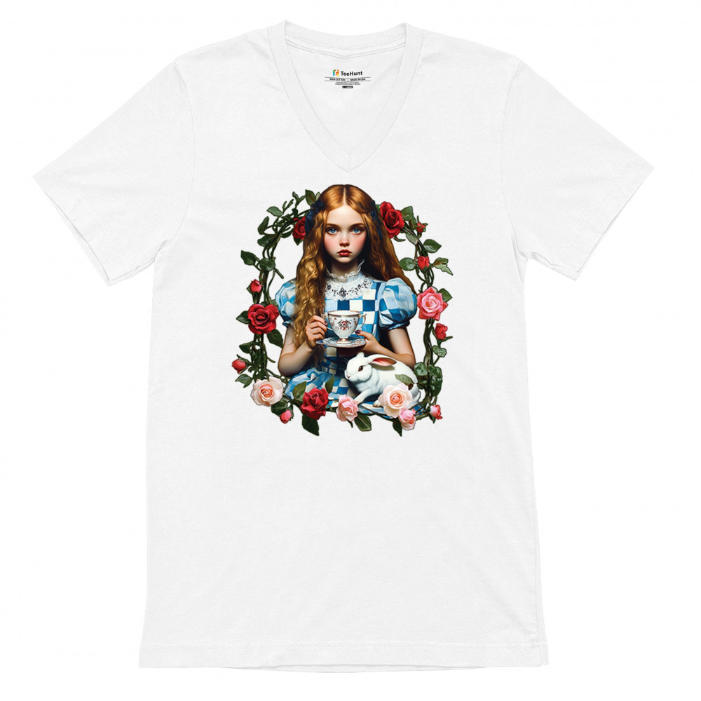 Step into a storybook dream with this Wonderland-inspired design featuring a young girl at a tea party with her white rabbit companion. Framed by roses, it evokes vintage charm, fantasy, and magical nostalgia. Ideal for bookworms, collectors, and lovers of fairytales, it blends whimsical elegance with timeless childhood wonder.
