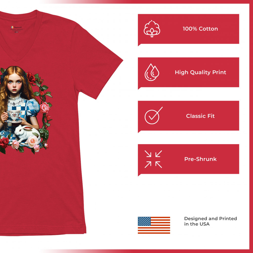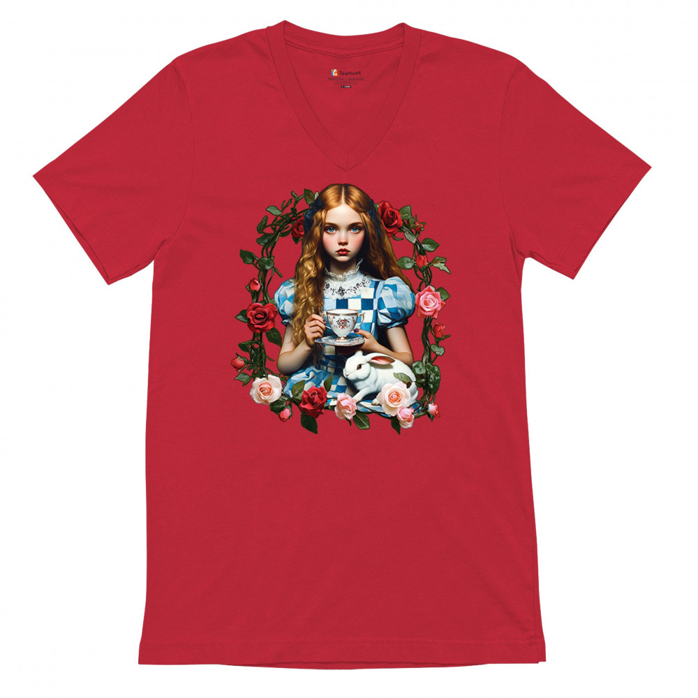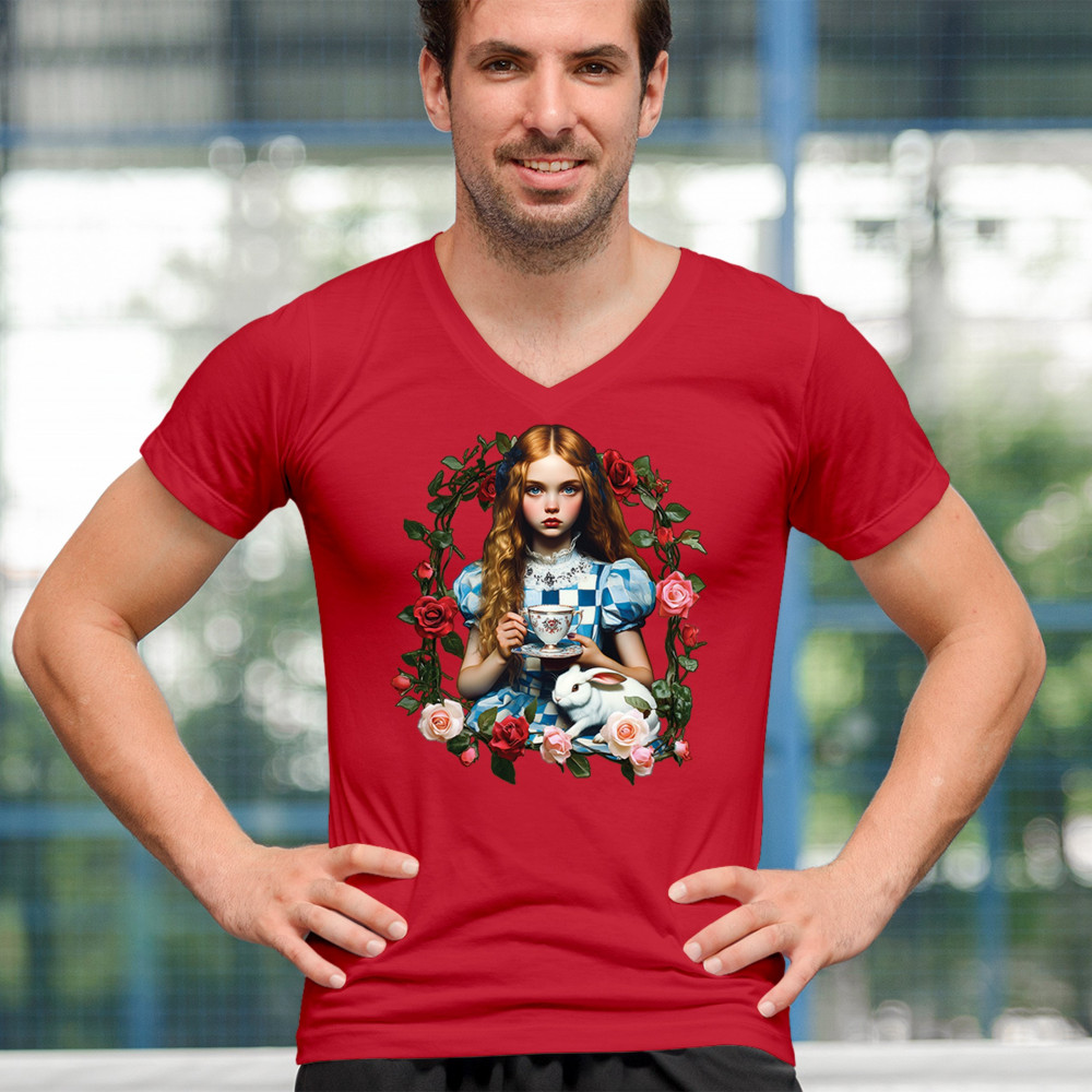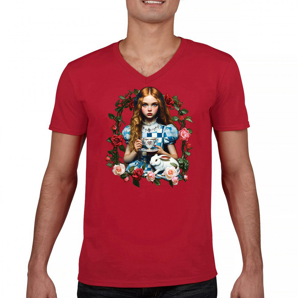 Step into a storybook dream with this Wonderland-inspired design featuring a young girl at a tea party with her white rabbit companion. Framed by roses, it evokes vintage charm, fantasy, and magical nostalgia. Ideal for bookworms, collectors, and lovers of fairytales, it blends whimsical elegance with timeless childhood wonder.